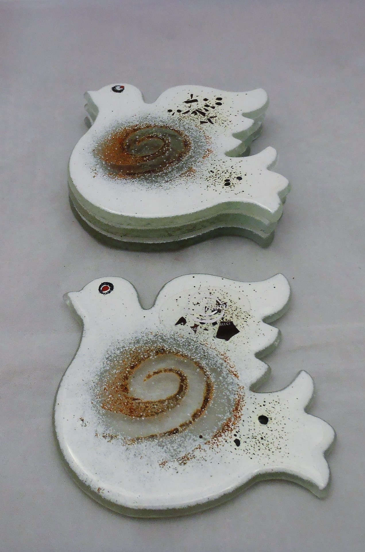 Χειροποίητο σουβέρ κατασκευασμένο από φυσητό γυαλί και σε σχέδιο περιστέρι 4/δα και διάσταση 10χ10εκ.