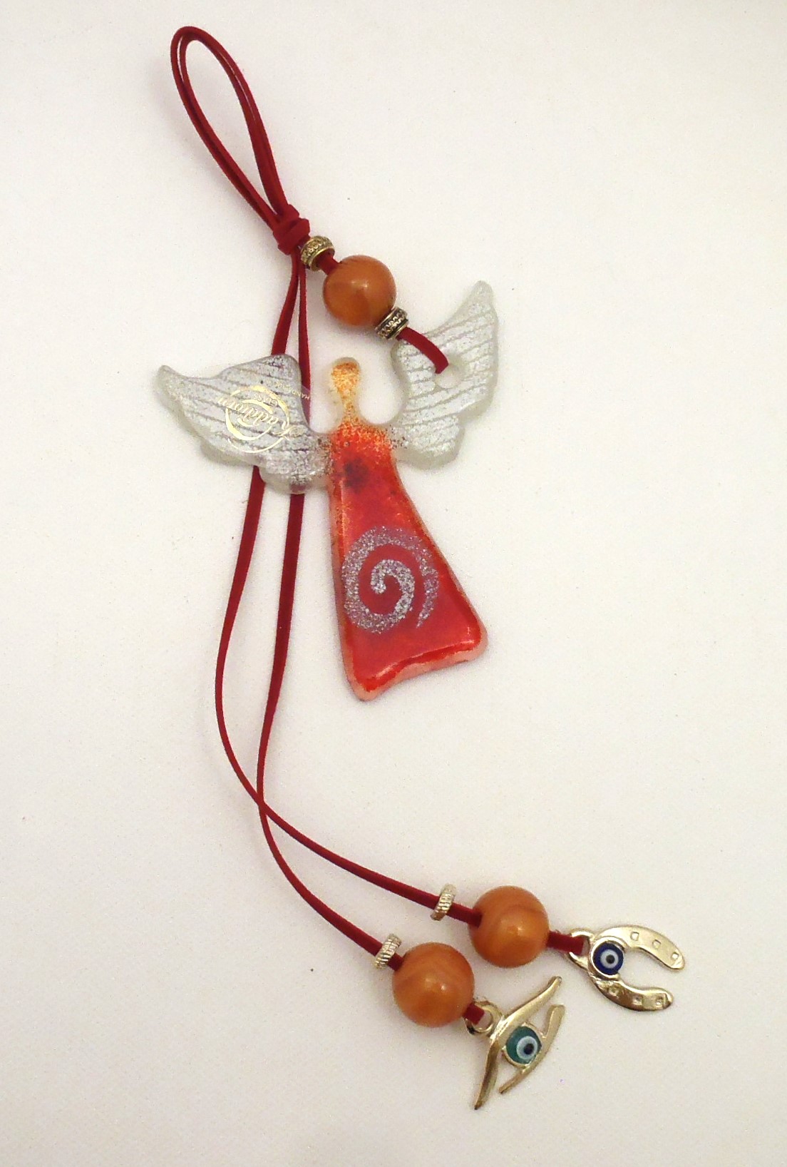 Χειροποίητο κρεμαστό γούρι άγγελος από φυσητό γυαλί σε δύο διαστάσεις 8χ25εκ. - 12χ25εκ.
