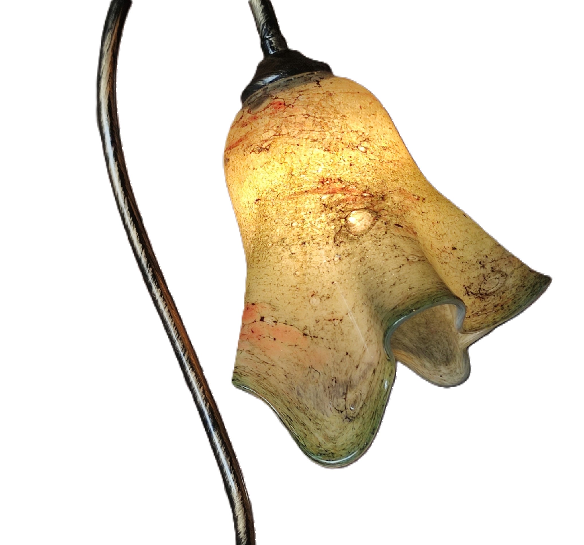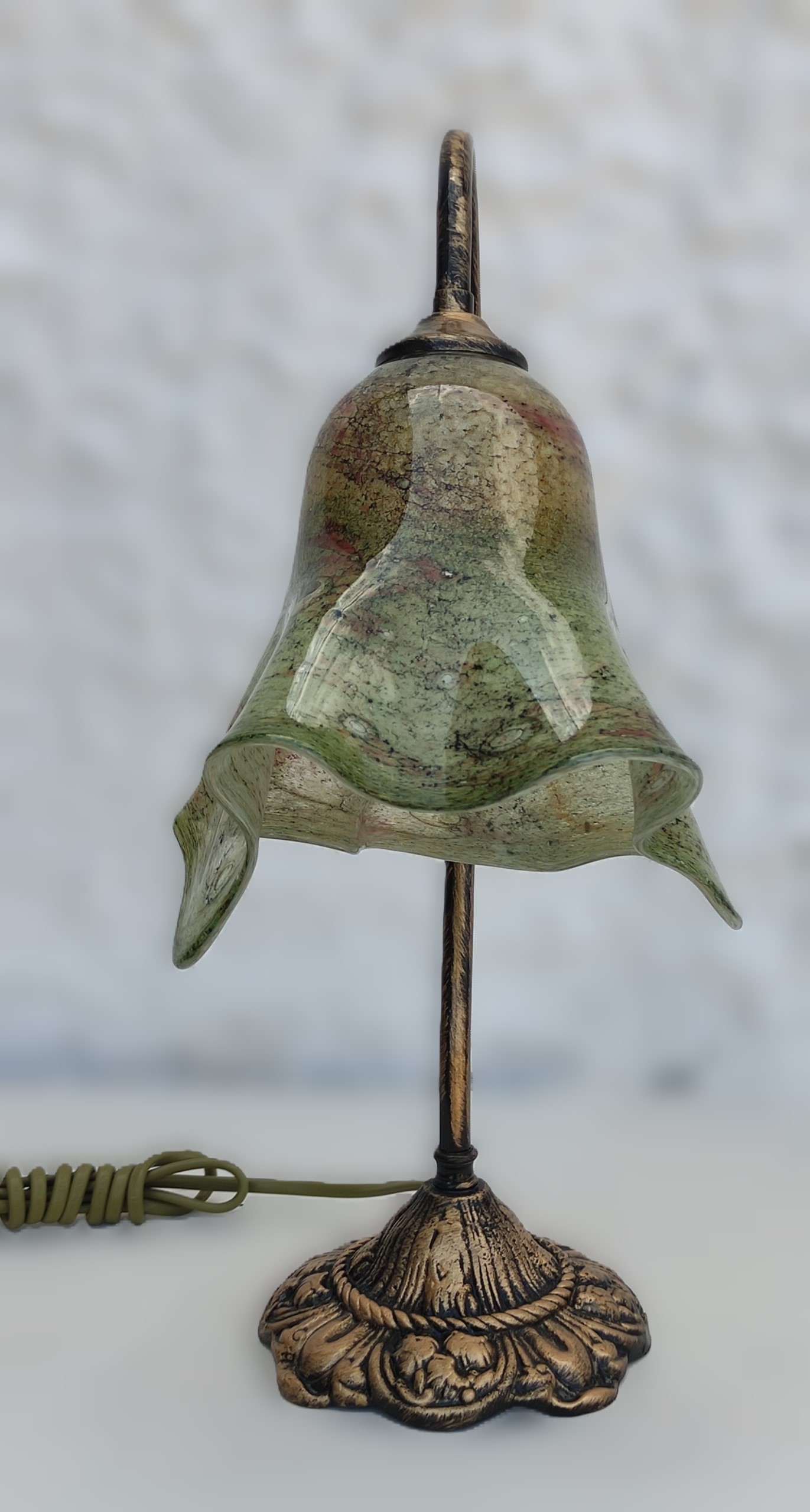 Χειροποίητο φωτιστικό από φυσητό γυαλί διαμέτρου Φ17εκ. και μπρούτζινη βάση συνολικού ύψους 38εκ. Ε14. Υπάρχει η δυνατότητα επιλογής γυαλιού