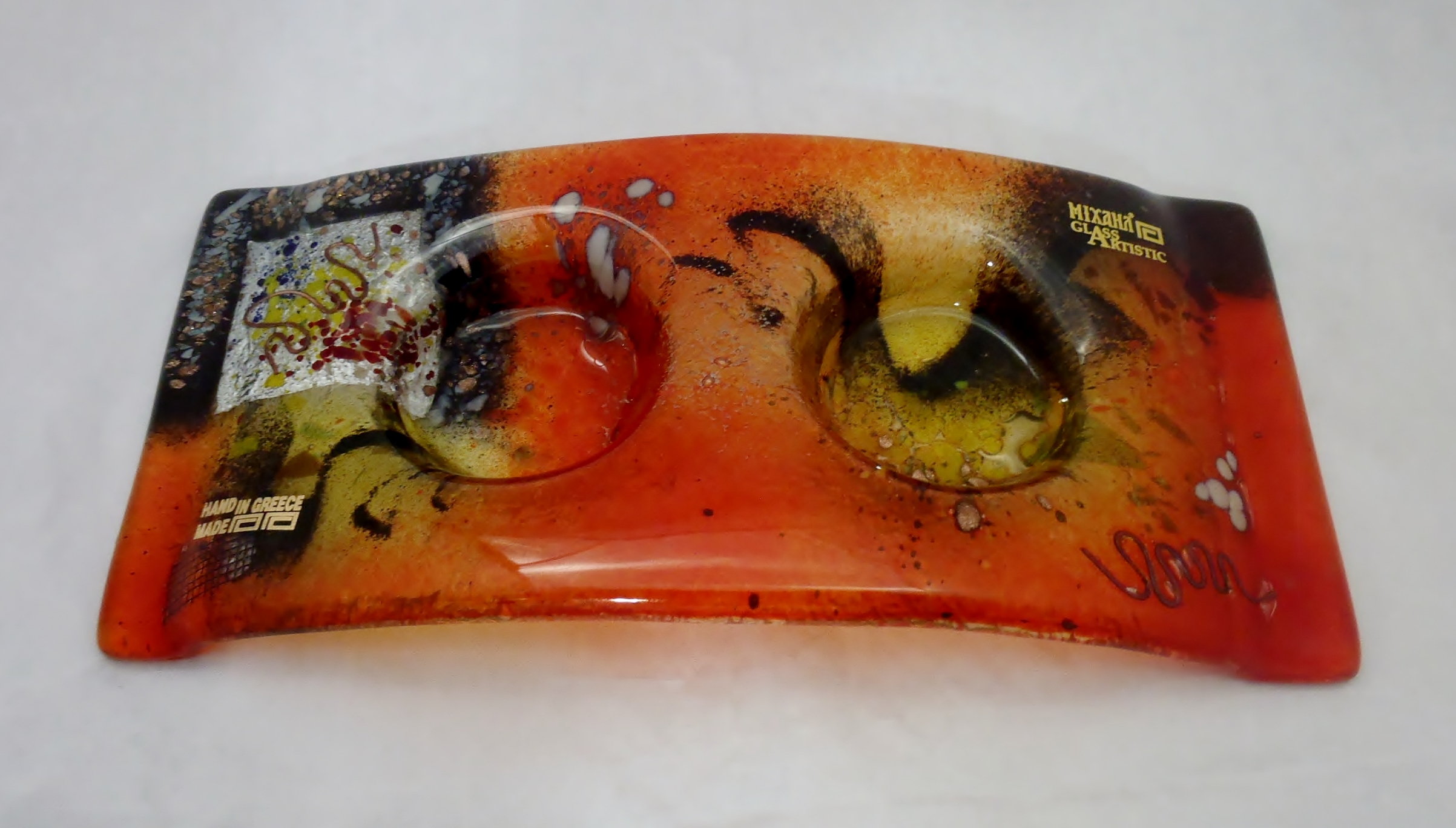 Χειροποίητο κηροπήγιο από γυαλί με δύο θέσεις για κεράκια ελληνικής