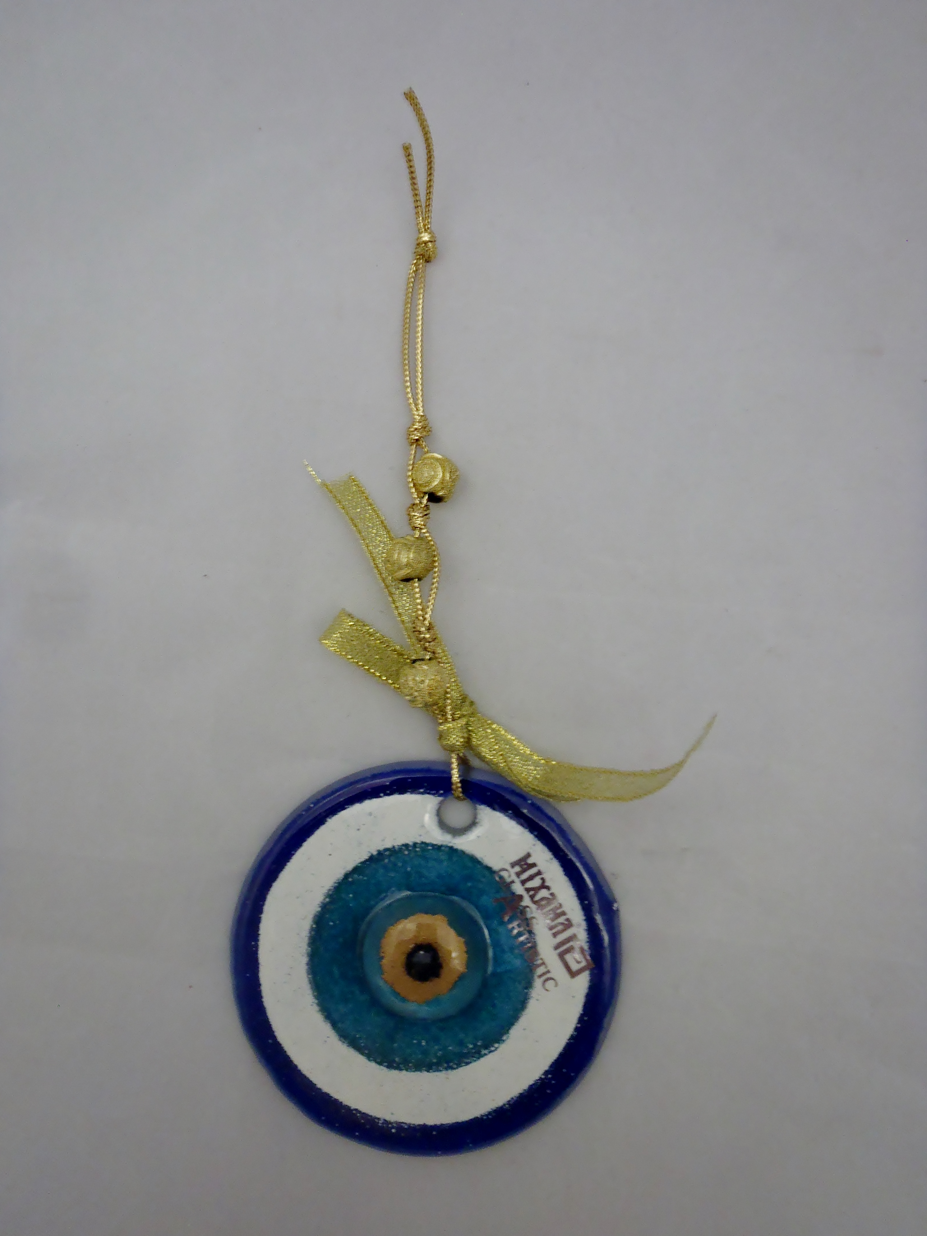 Χειροποίητο γούρι μάτι κατασκευασμένο από φυσικό γυαλί διαμέτρου 8εκ.