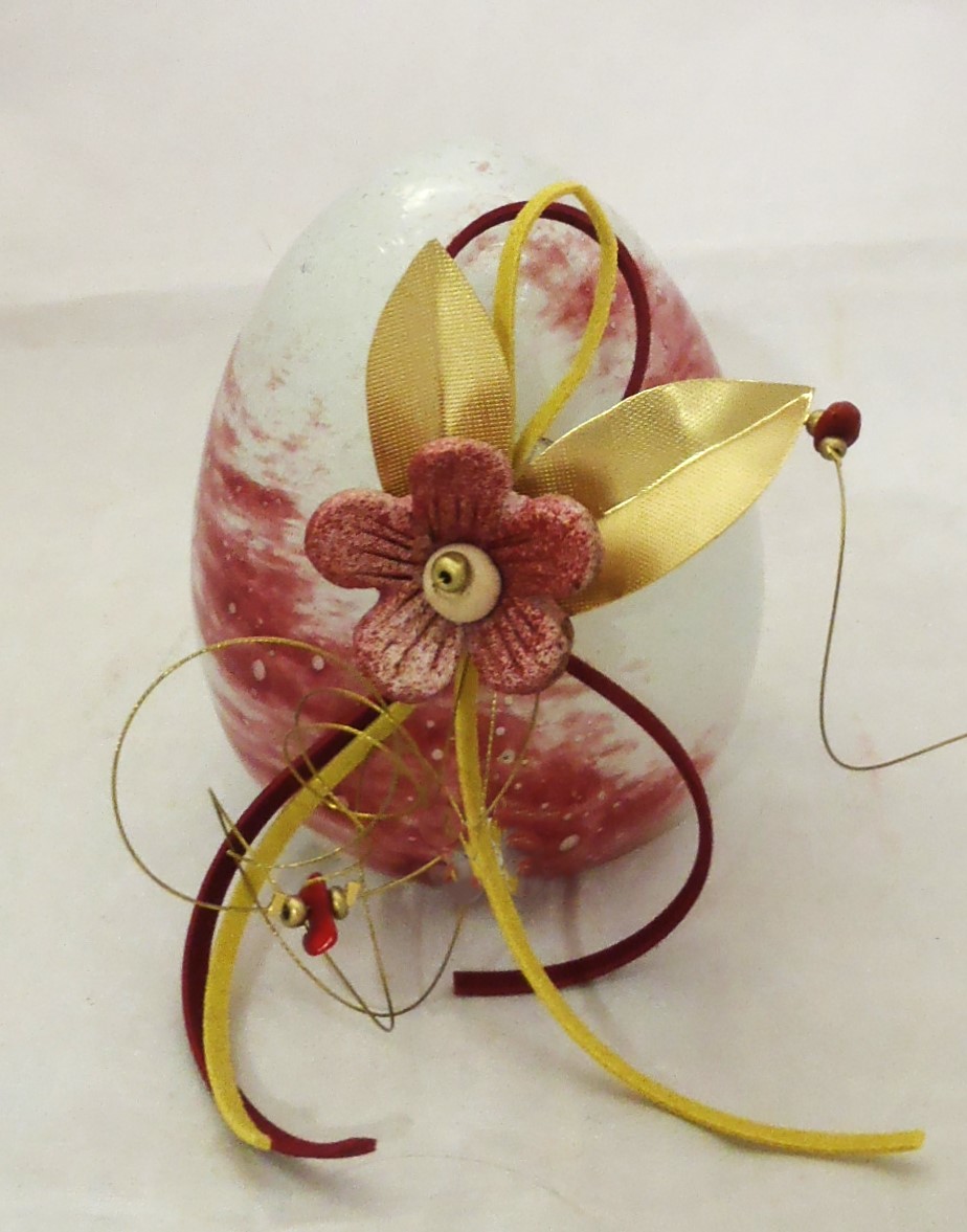 Χειροποίητα αυγά κατασκευασμένα από φυσητό γυαλί σε Λευκό ρόζ χρώμα και σε τρεις διαστάσεις με διακόσμηση  από κεραμικά και μπρούτζινα στοιχεία ή χωρίς διακόσμηση,