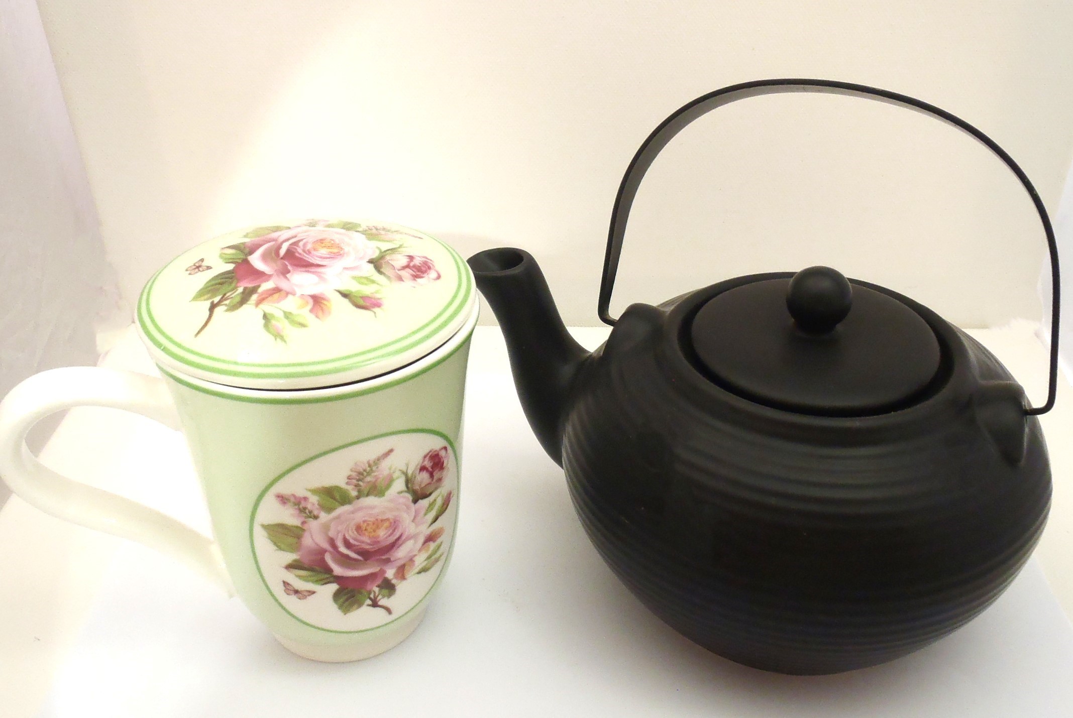 Χειροποίητο σετ σερβιρίσματος που αποτελείται από κούπες με καπάκι ,χειροποίητη πιατέλα, τσαγέρα με φίλτρο τσαγιού.
