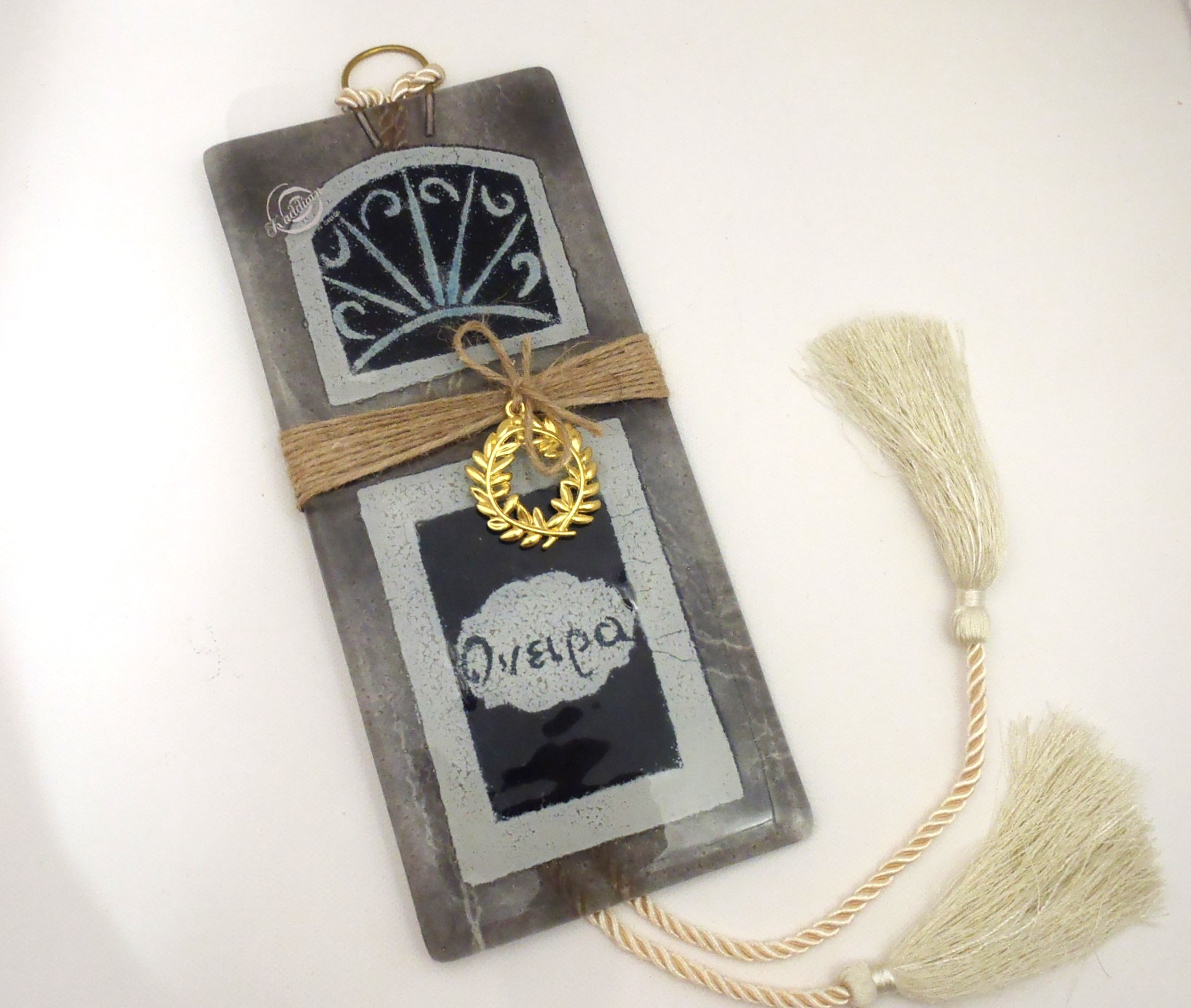 Χειροποίητο κρεμαστό γούρι πόρτα κατασκευασμένο από φυσητό γυαλί σε δύο σχέδια και σε διάσταση 22χ10εκ.