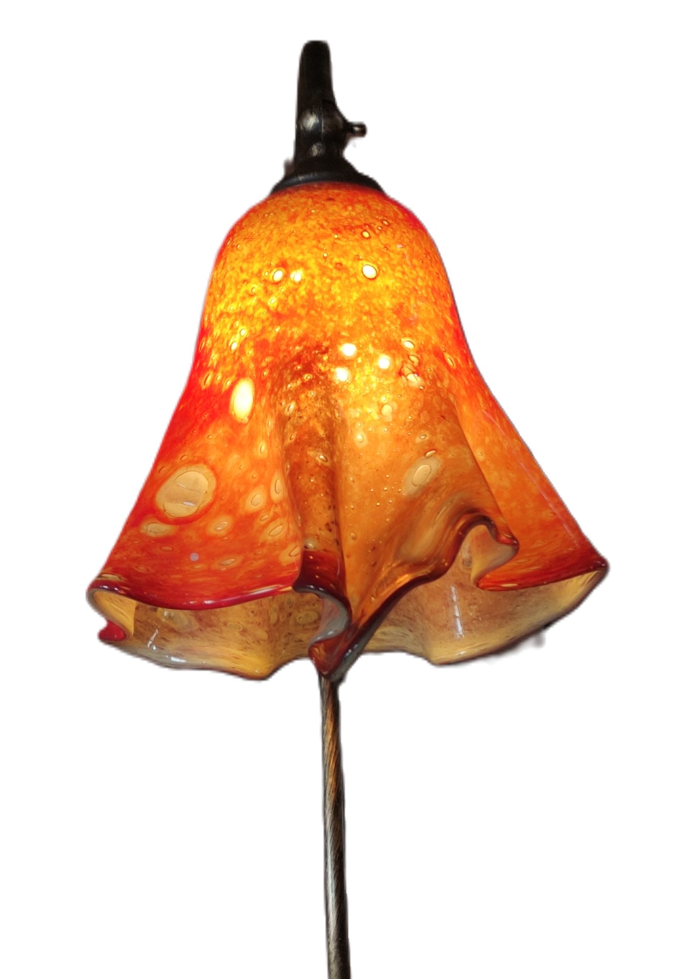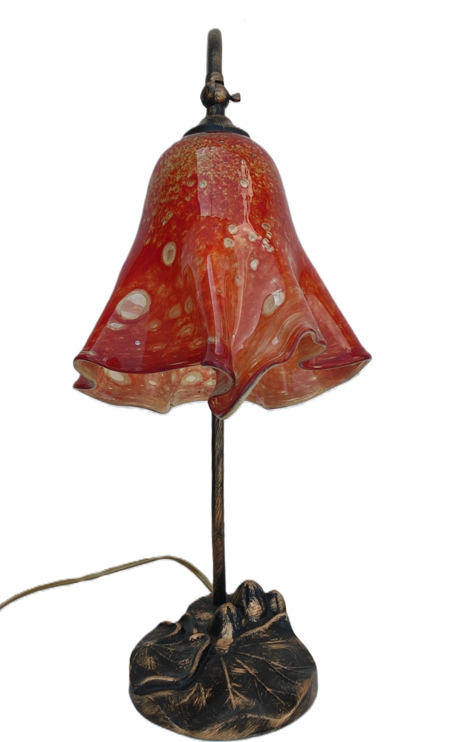 Χειροποίητο φωτιστικό από φυσητό γυαλί διαμέτρου Φ22εκ. και μπρούτζινη βάση συνολικού ύψους 43εκ. Ε14. Υπάρχει η δυνατότητα επιλογής γυαλιού