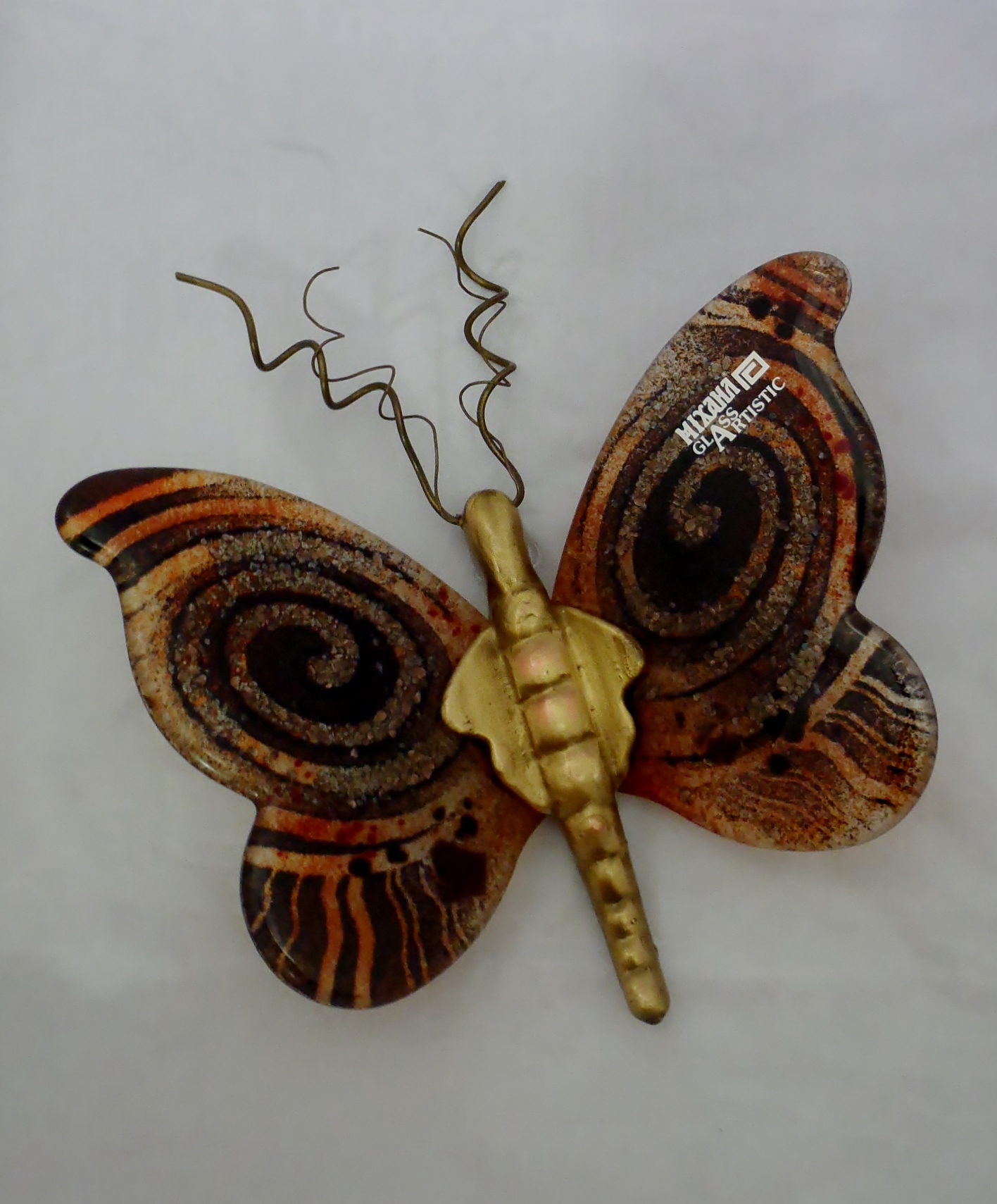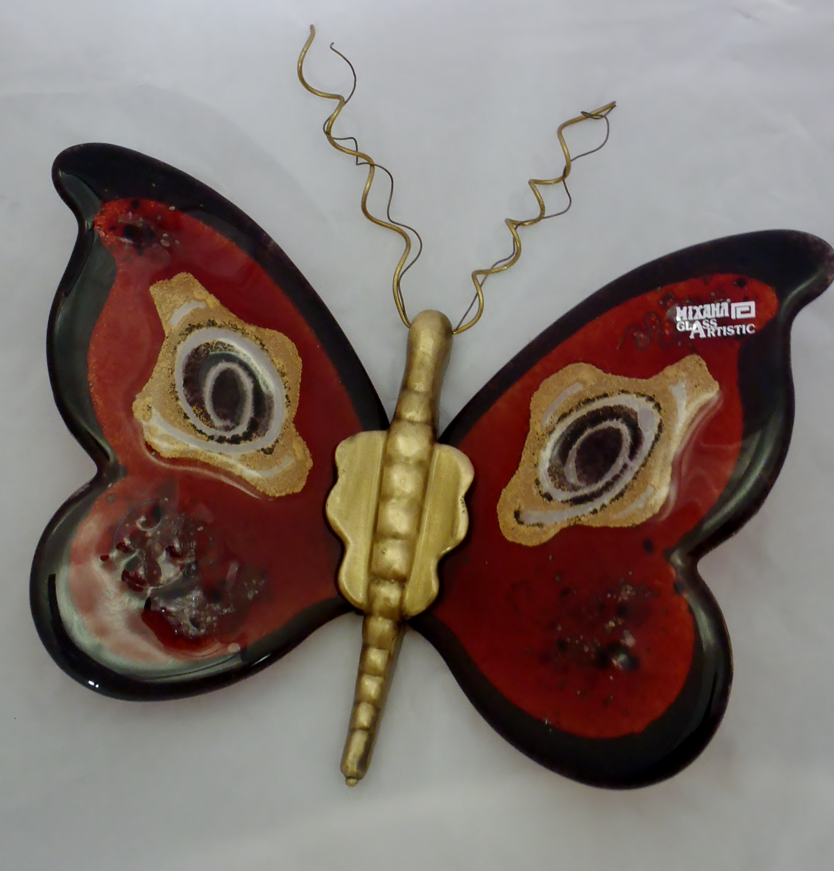 Χειροποίητη επιτοίχια πεταλούδα κατασκευασμένη από φυσητό γυαλί και μπρούτζο σε διάφορα χρώματα