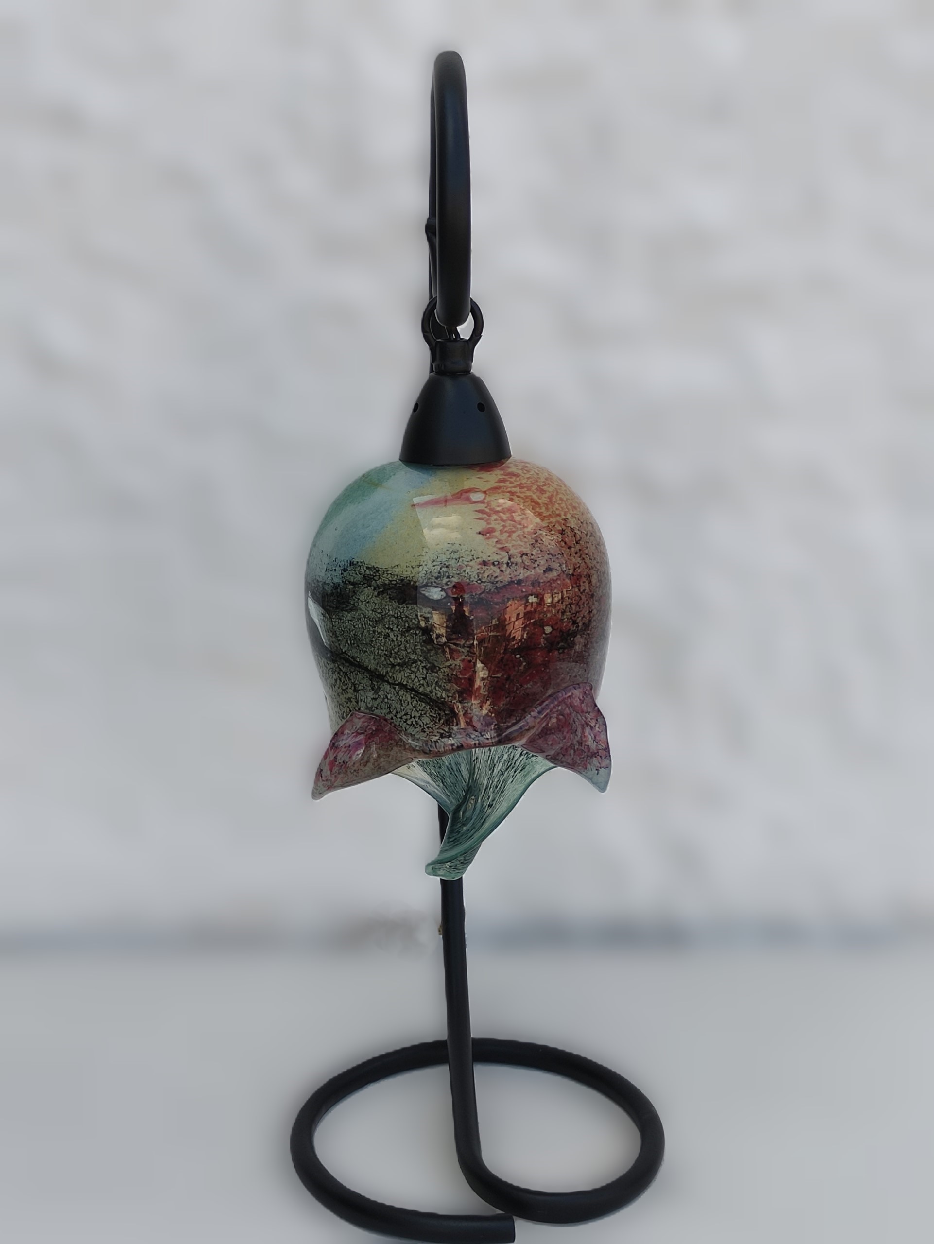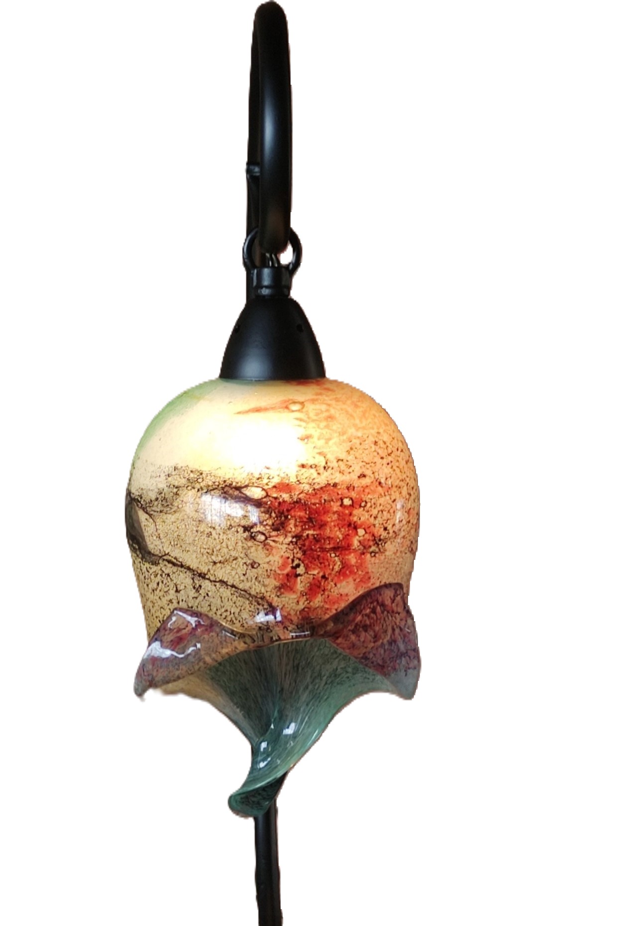 Χειροποίητο φωτιστικό από φυσητό γυαλί διαμέτρου Φ19εκ. και μπρούτζινη βάση συνολικού ύψους 49εκ. Υπάρχει η δυνατότητα επιλογής γυαλιού. Ε14
