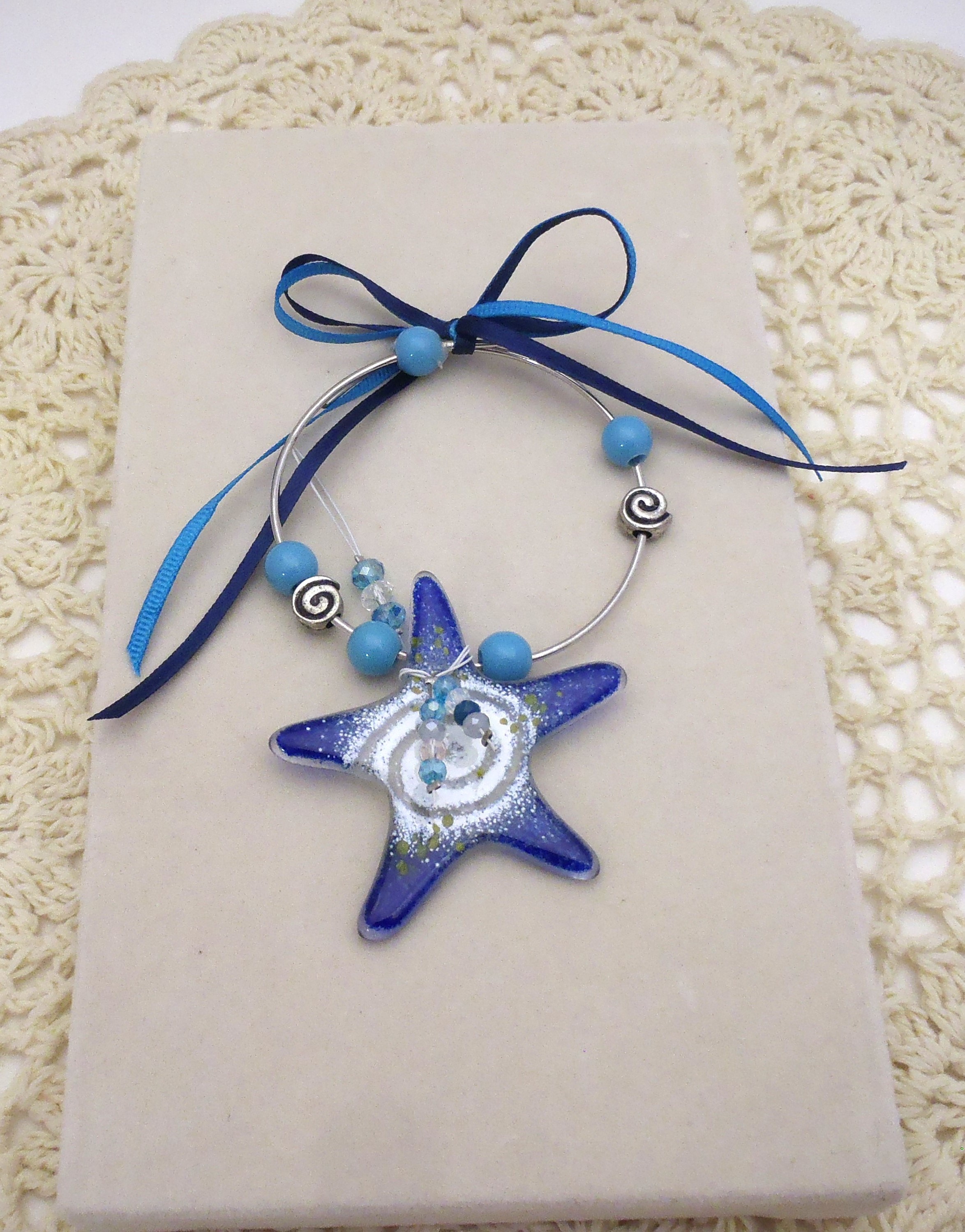 Χειροποίητο στεφανάκι με πέτρες και αστερία από φυσητό γυαλί σε διάσταση 11χ7εκ.