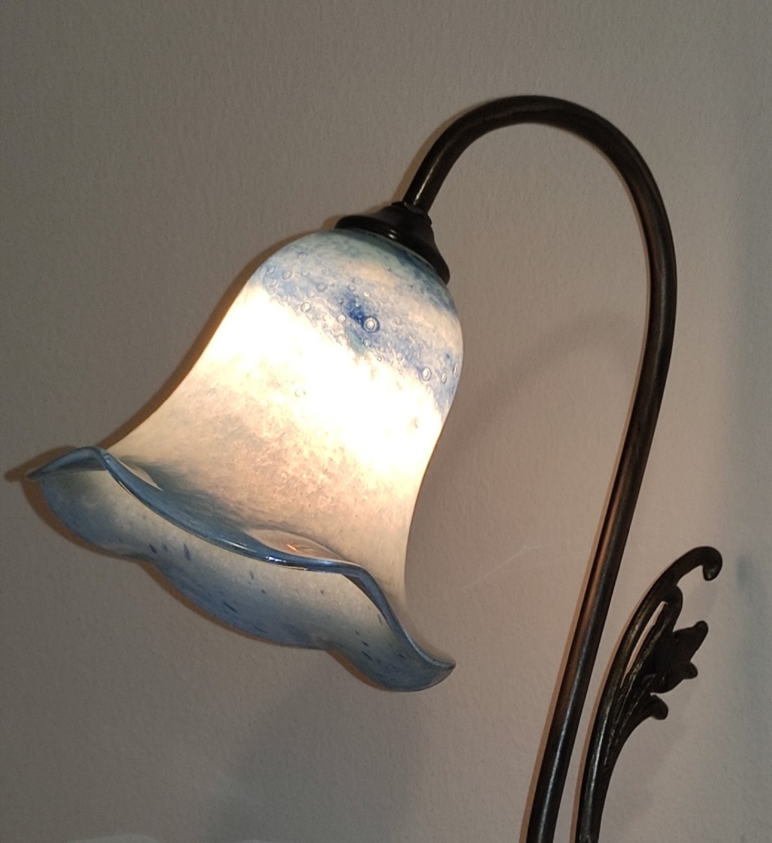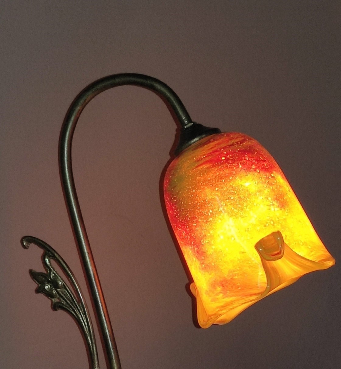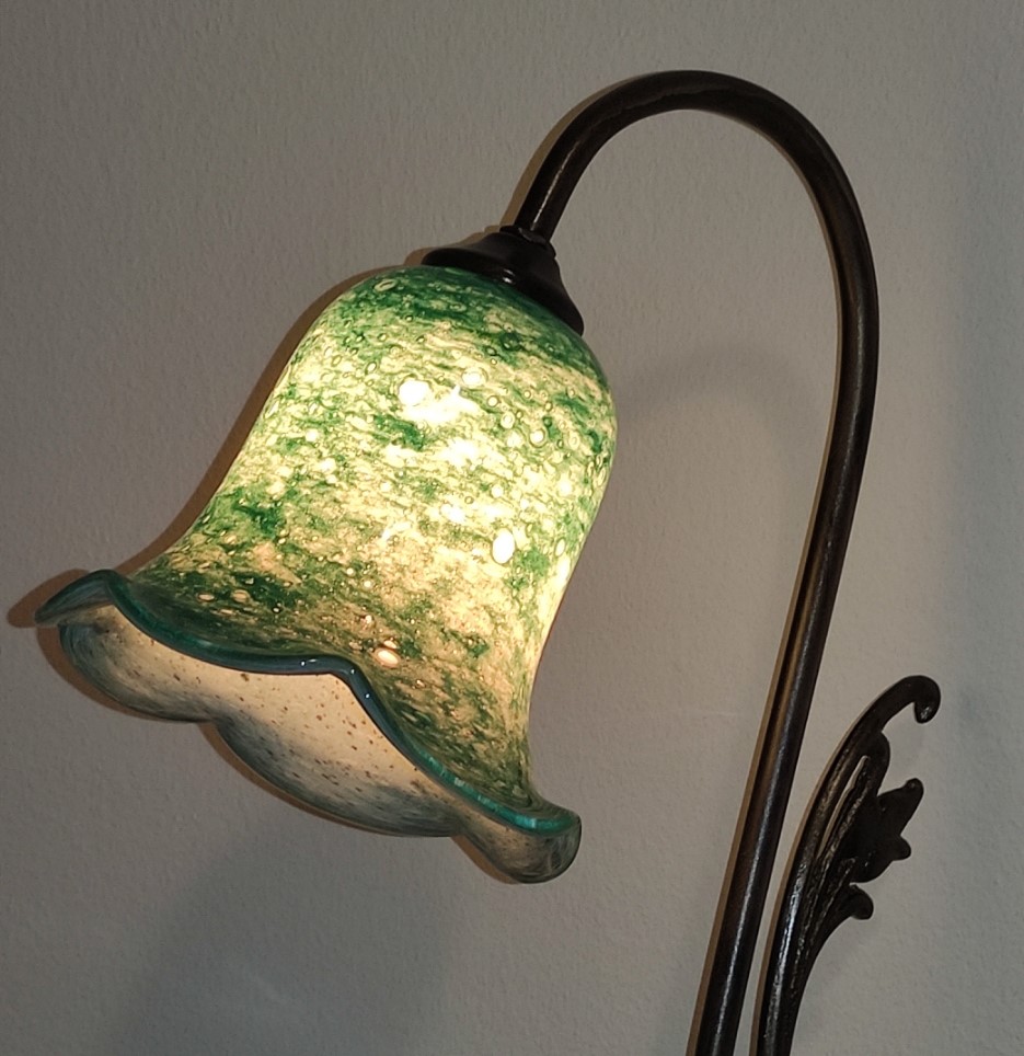 Χειροποίητο πορτατίφ ελληνικής κατασκευής από φυσητό γυαλί και μπρούτζινη βάση σε ύψος περίπου τα 36εκ. E14. Υπάρχει η δυνατότητα επιλογής γυαλιού.