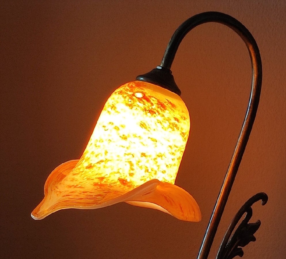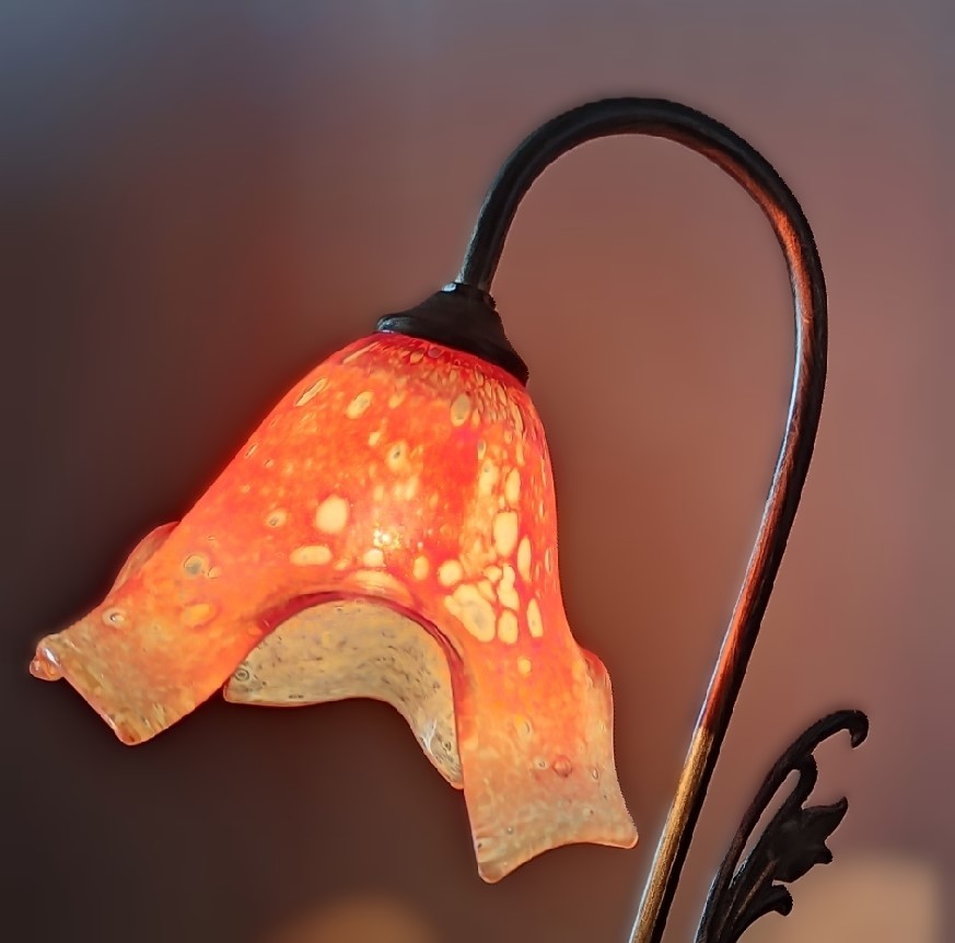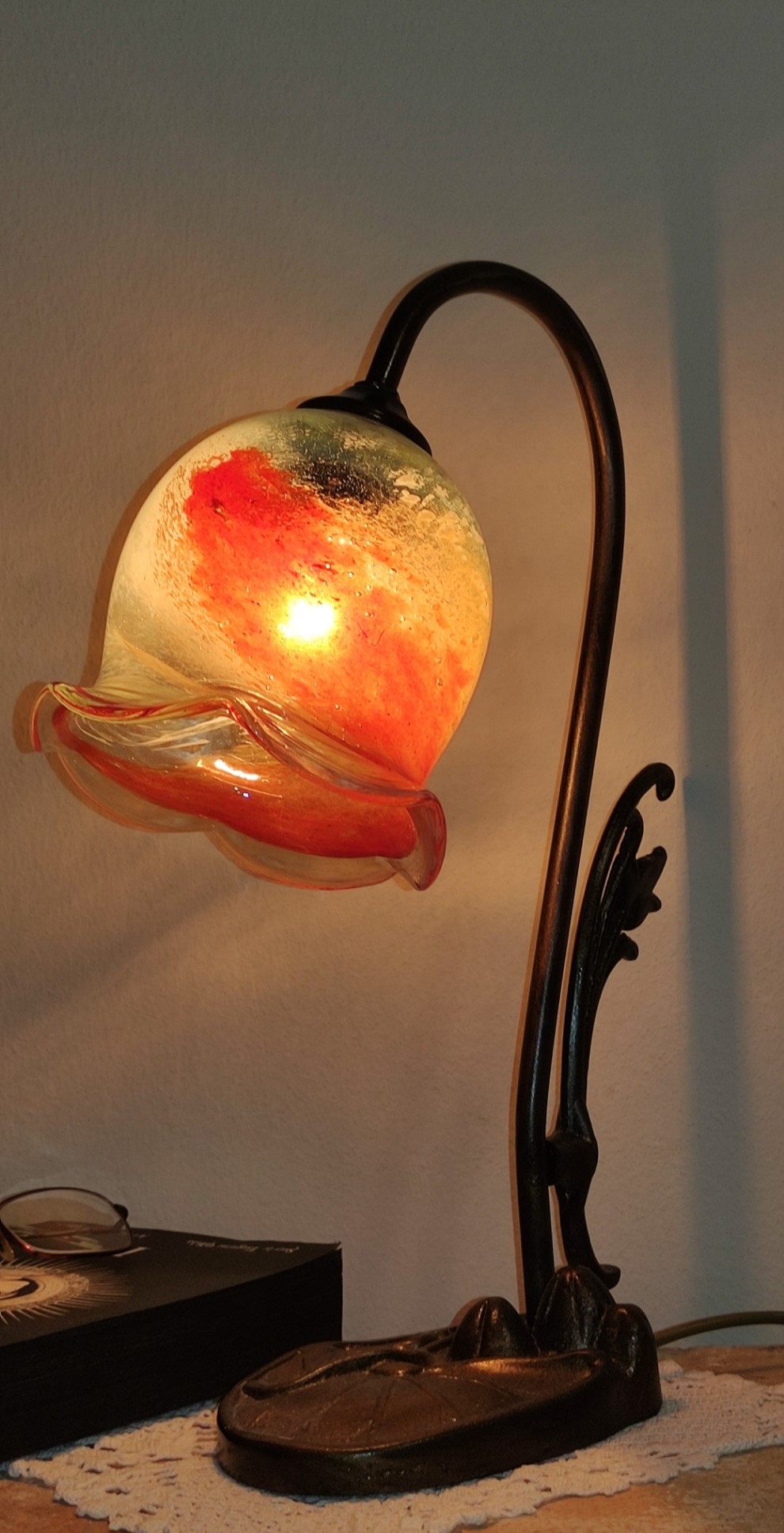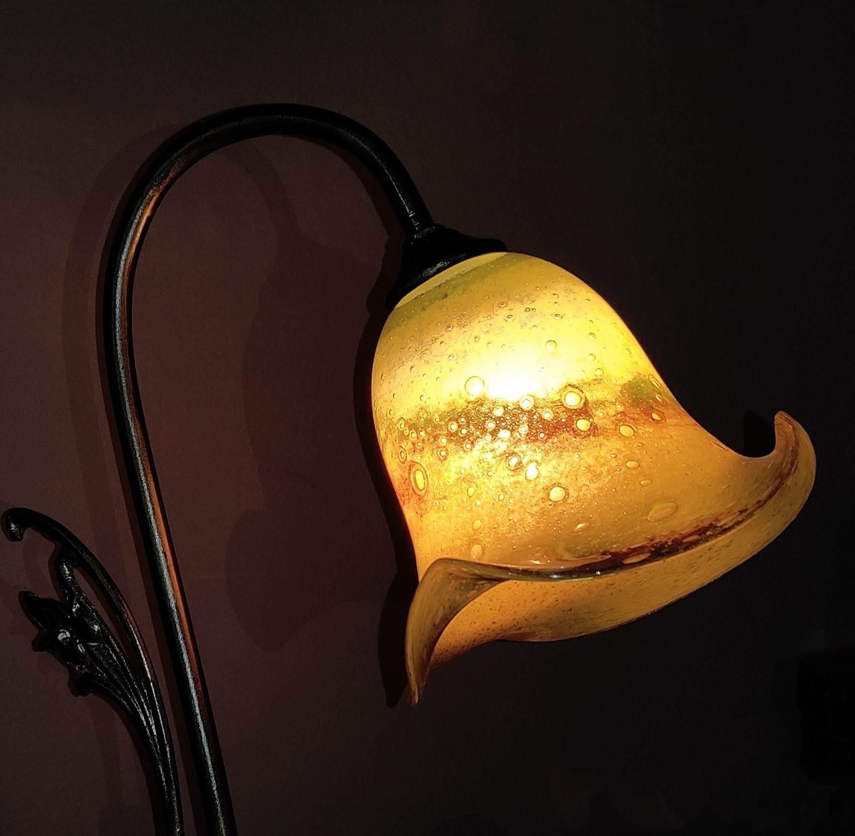 Χειροποίητο πορτατίφ ελληνικής κατασκευής από φυσητό γυαλί και μπρούτζινη βάση σε ύψος περίπου τα 36εκ. E14. Υπάρχει η δυνατότητα επιλογής γυαλιού.