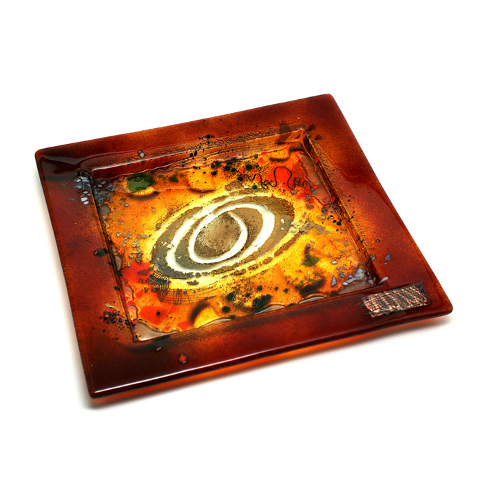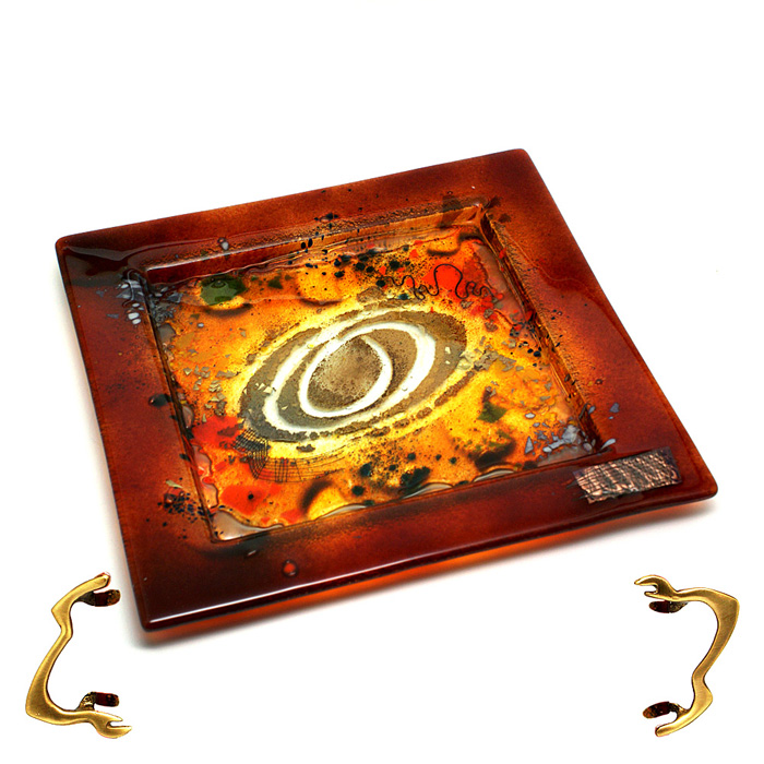 Χειροποίητος δίσκος από φυσητό γυαλί ελληνικής κατασκευής και με μπρούτζινα χεράκια