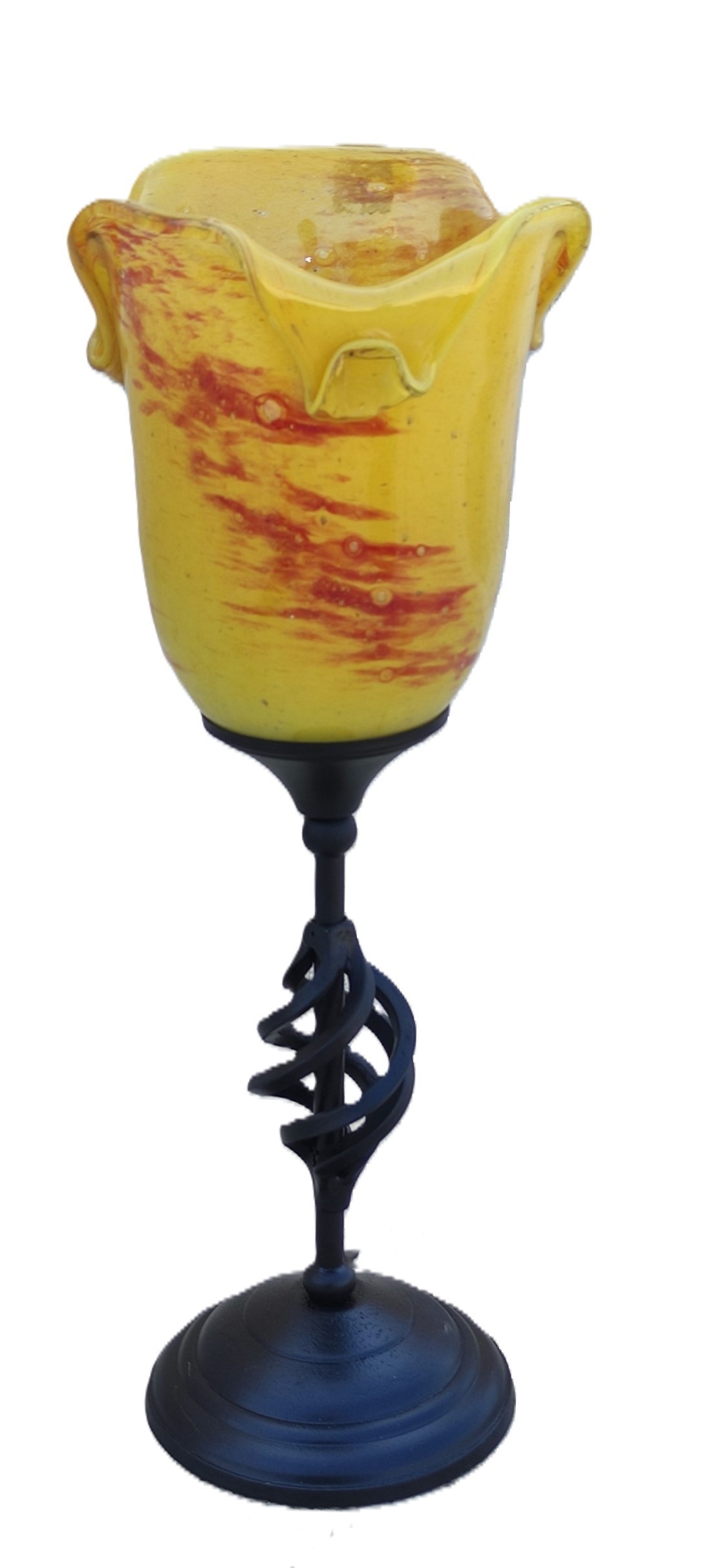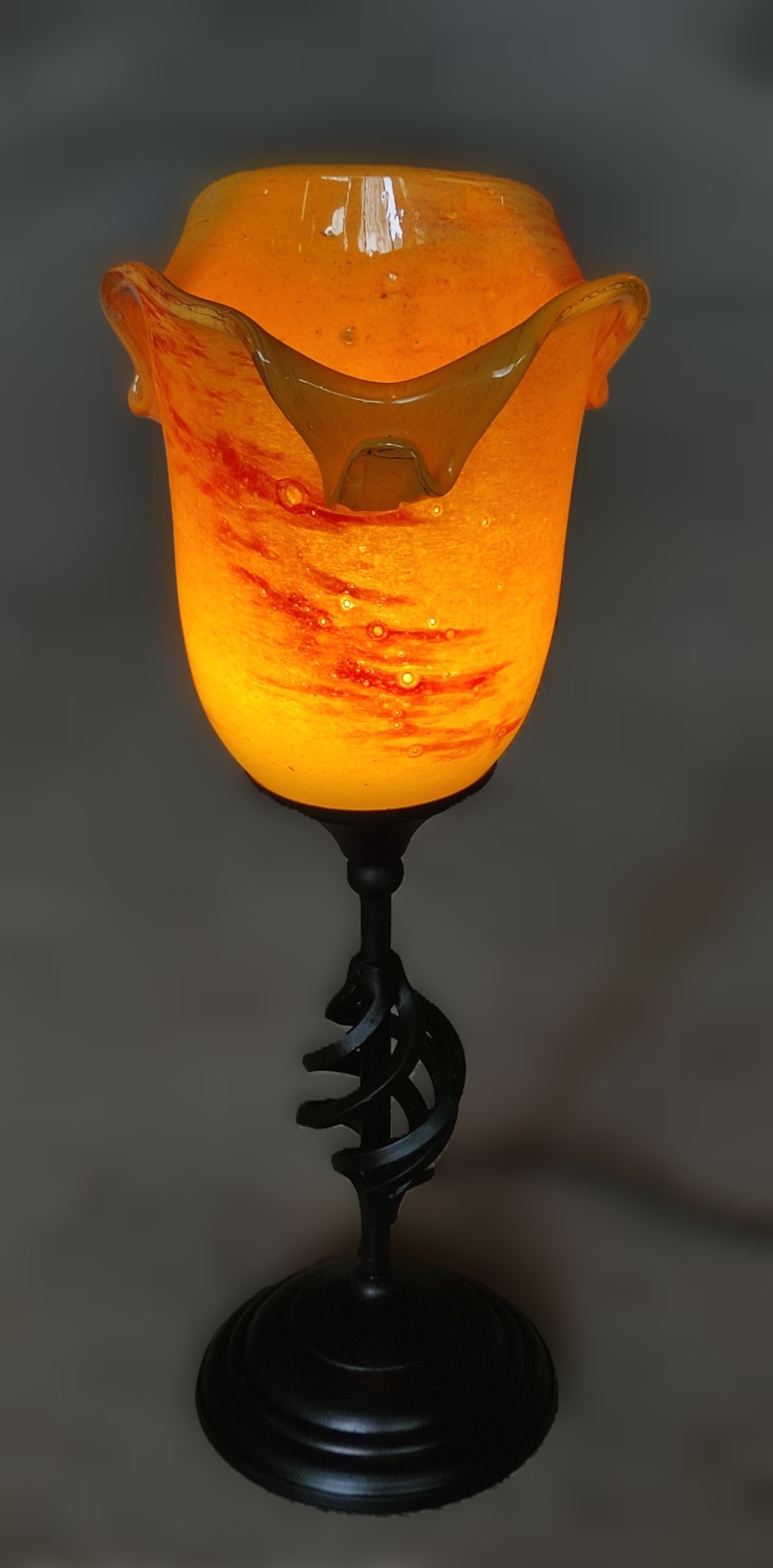 Χειροποίητο φωτιστικό από φυσητό γυαλί Φ15 και μπρούτζινη βάση με συνολικό ύψος 43εκ. Ε14