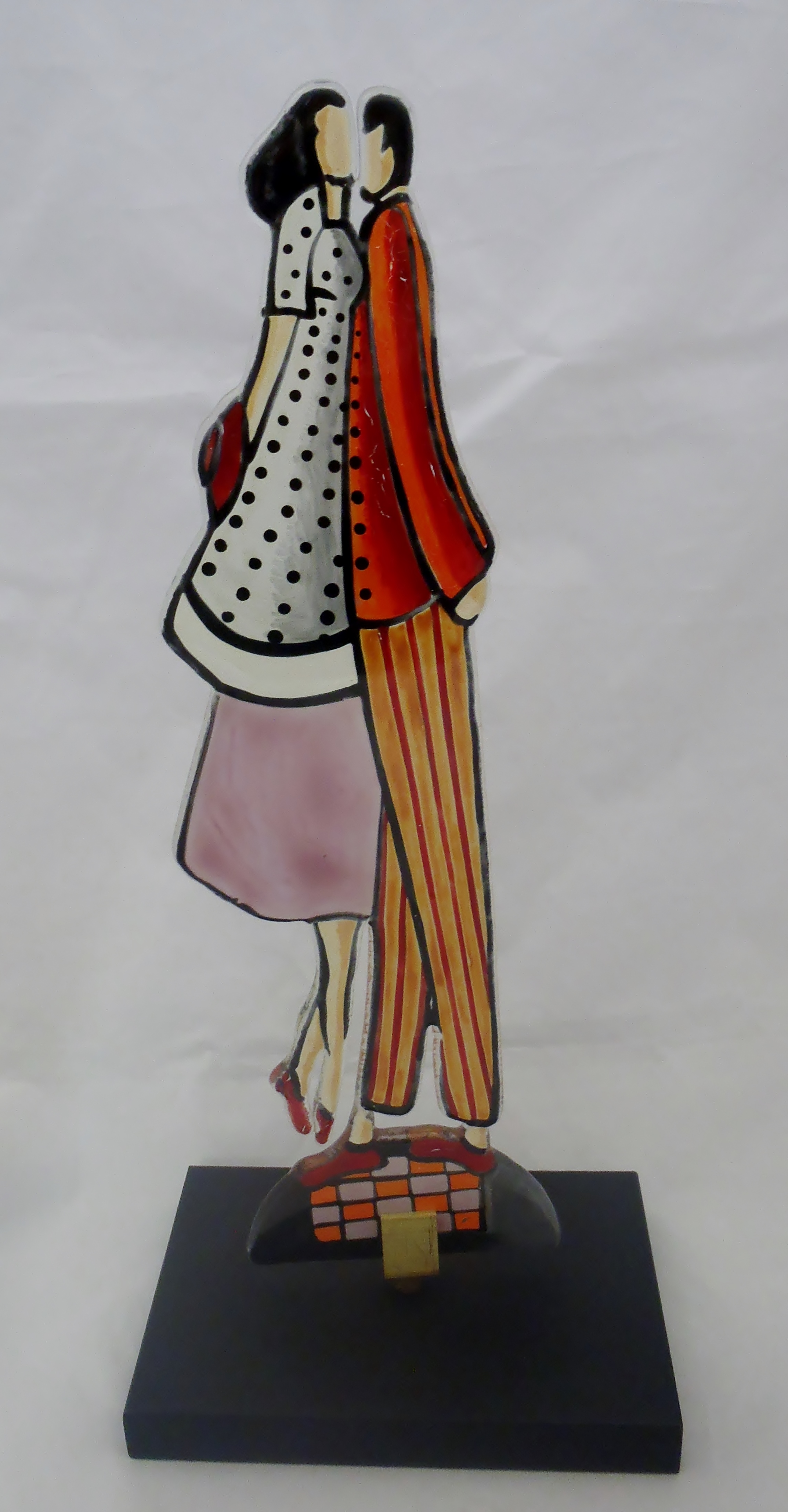 Χειροποίητη φιγούρα κατασκευασμένη από φυσητό γυαλί με δέσιμο από μπρούτζο τοποθετημένη σε ξύλινη βάση και σε διάσταση 32χ14χ9εκ.