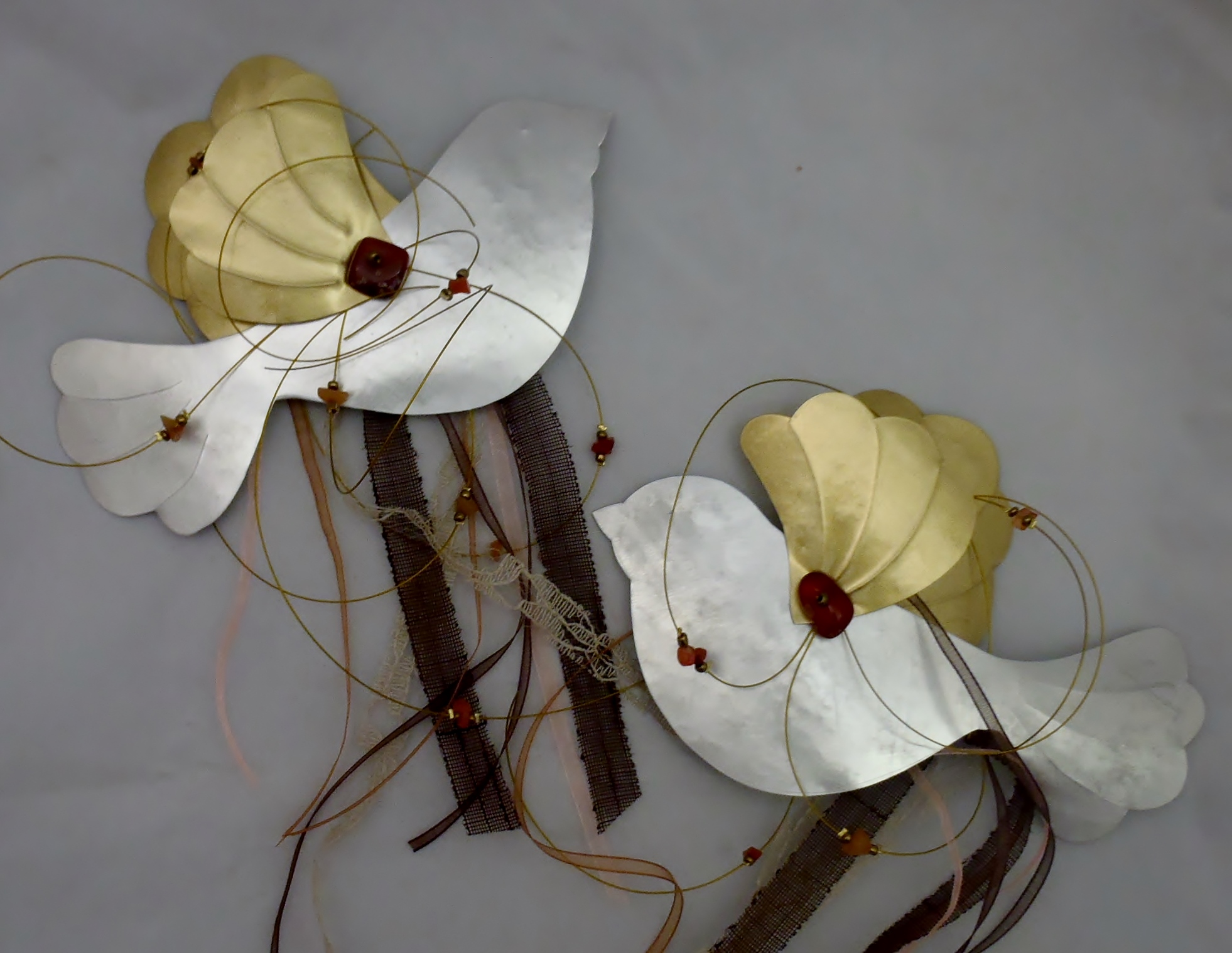 Χειροποίητα μπρούτζινα επιτοίχια περιστέρια σε διάσταση 22χ10 εκ.