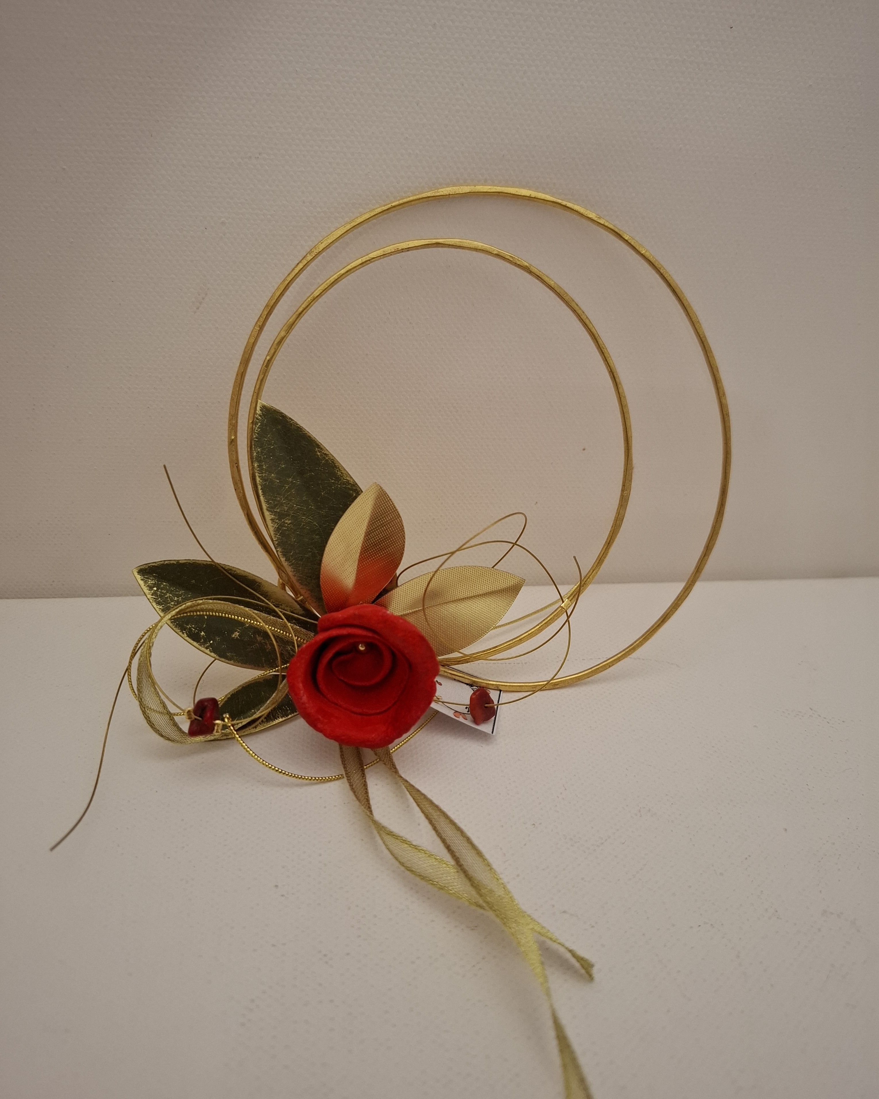 Χειροποίητο γούρι στεφανάκι μπρούτζινο διπλό με τριαντάφυλλο κόκκινο σε διάσταση 12χ12εκ.