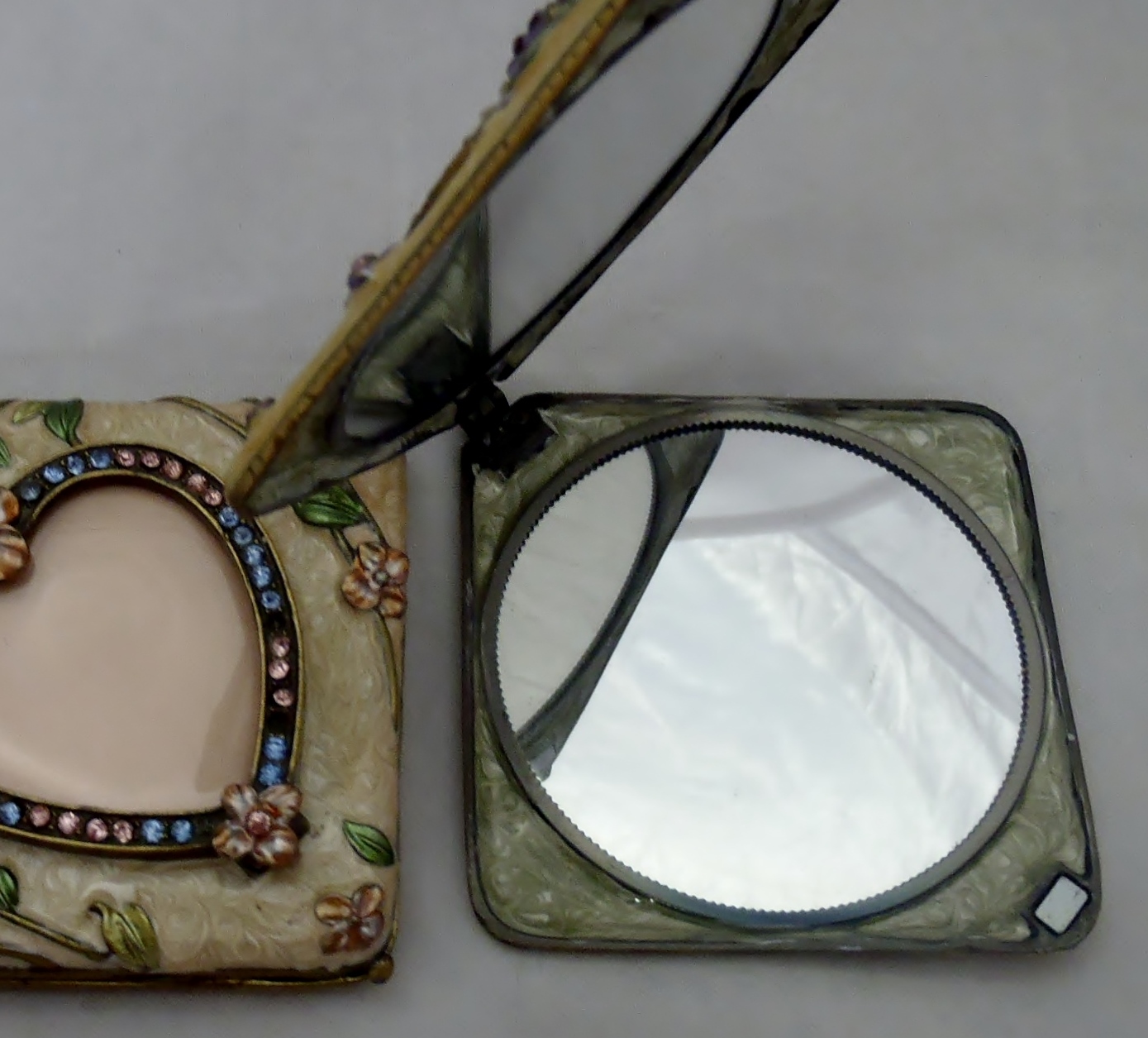 Χειροποίητο διπλό καθρεφτάκι τσάντας σε δύο σχέδια κατασκευασμένο