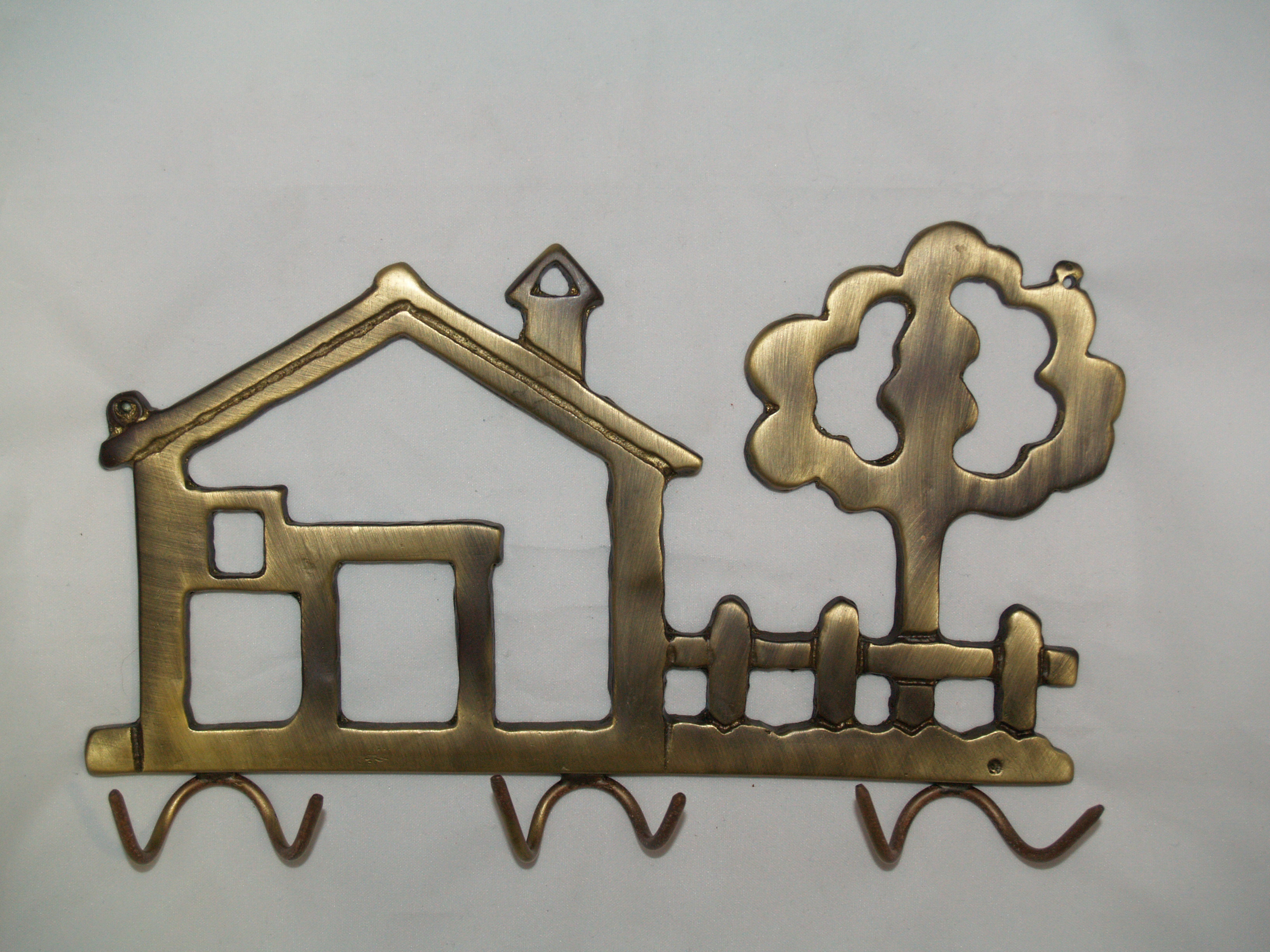 Κλειδοθήκη μπρούτζινη τοίχου με σχέδιο σπίτι-δέντρο.