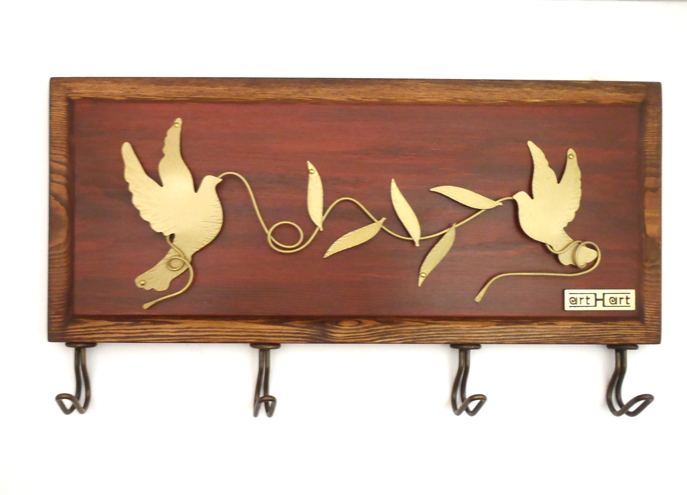 Χειροποίητη κρεμαστή από μασίφ ξύλο τεσσάρων θέσεων διακοσμημένη με  ζωγραφική και φιγούρες από μπρούντζο στην πρόσοψη και διάσταση 32χ14 εκ.