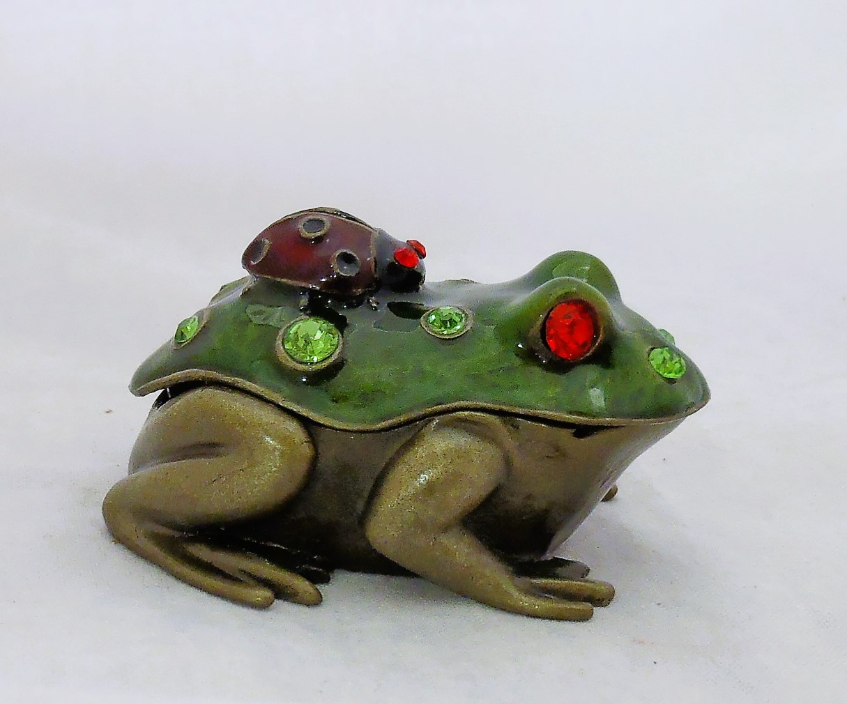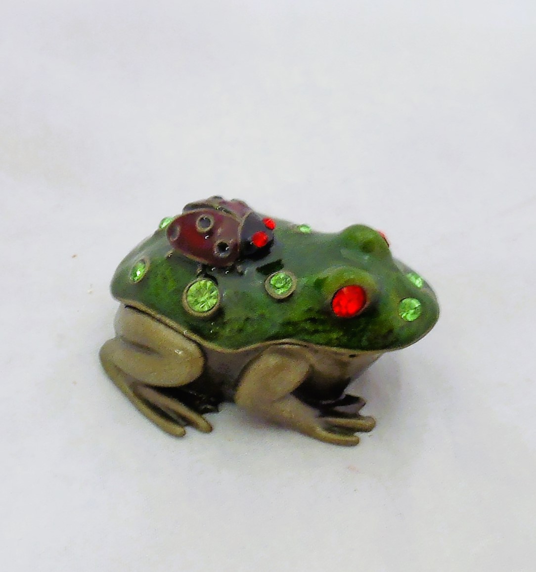 Επιτραπέζια μπρούτζινη μινιατούρα κουτάκι βατραχάκι διακοσμημένη με σμάλτο και στρας σε διάσταση 6χ4εκ.