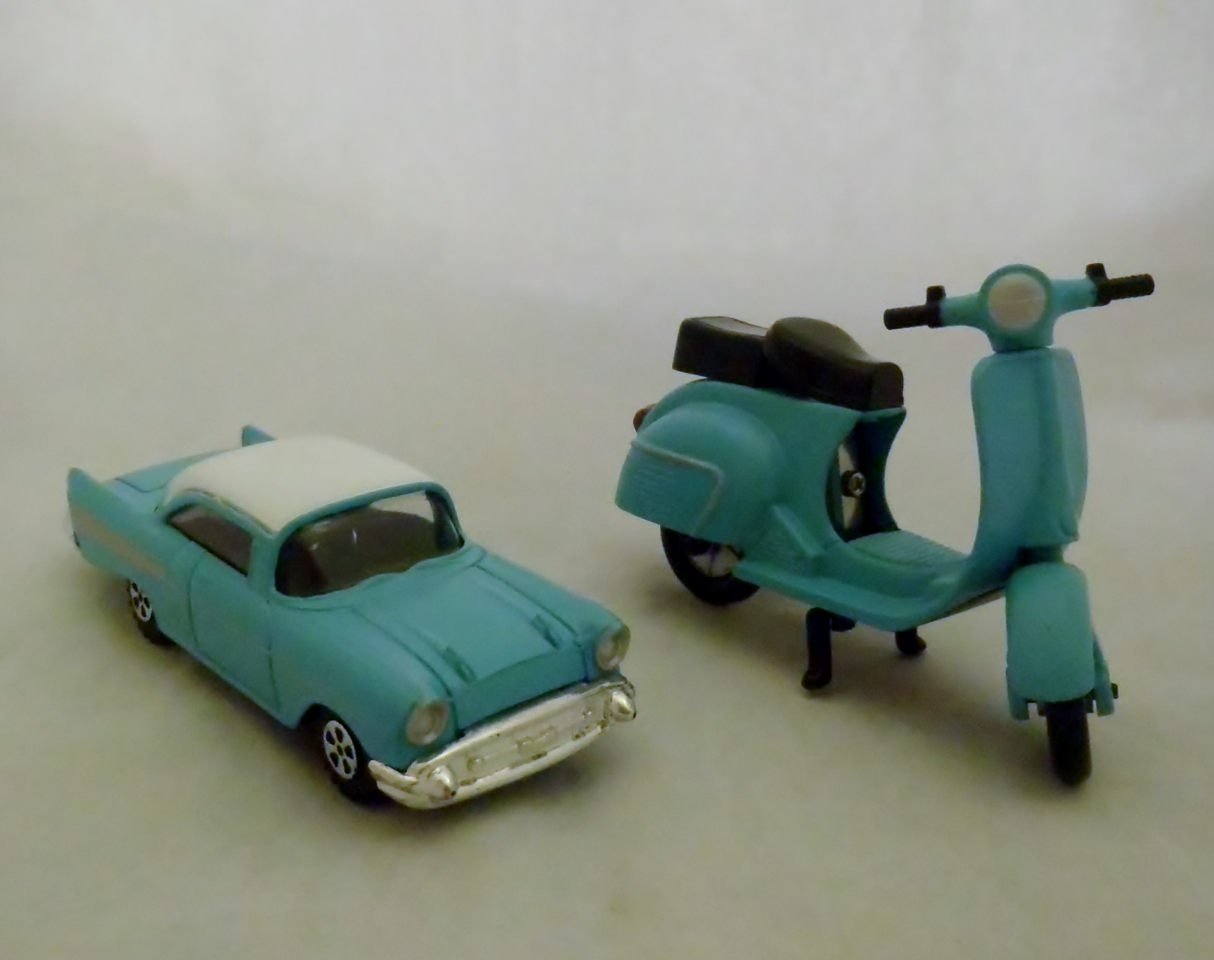 Μεταλλικές επιτραπέζιες μινιατούρες ξύστρες σε σιέλ χρώμα σε σχέδια αυτοκίνητο διάστασης 10χ4εκ. και μηχανή διάστασης 9χ6εκ.