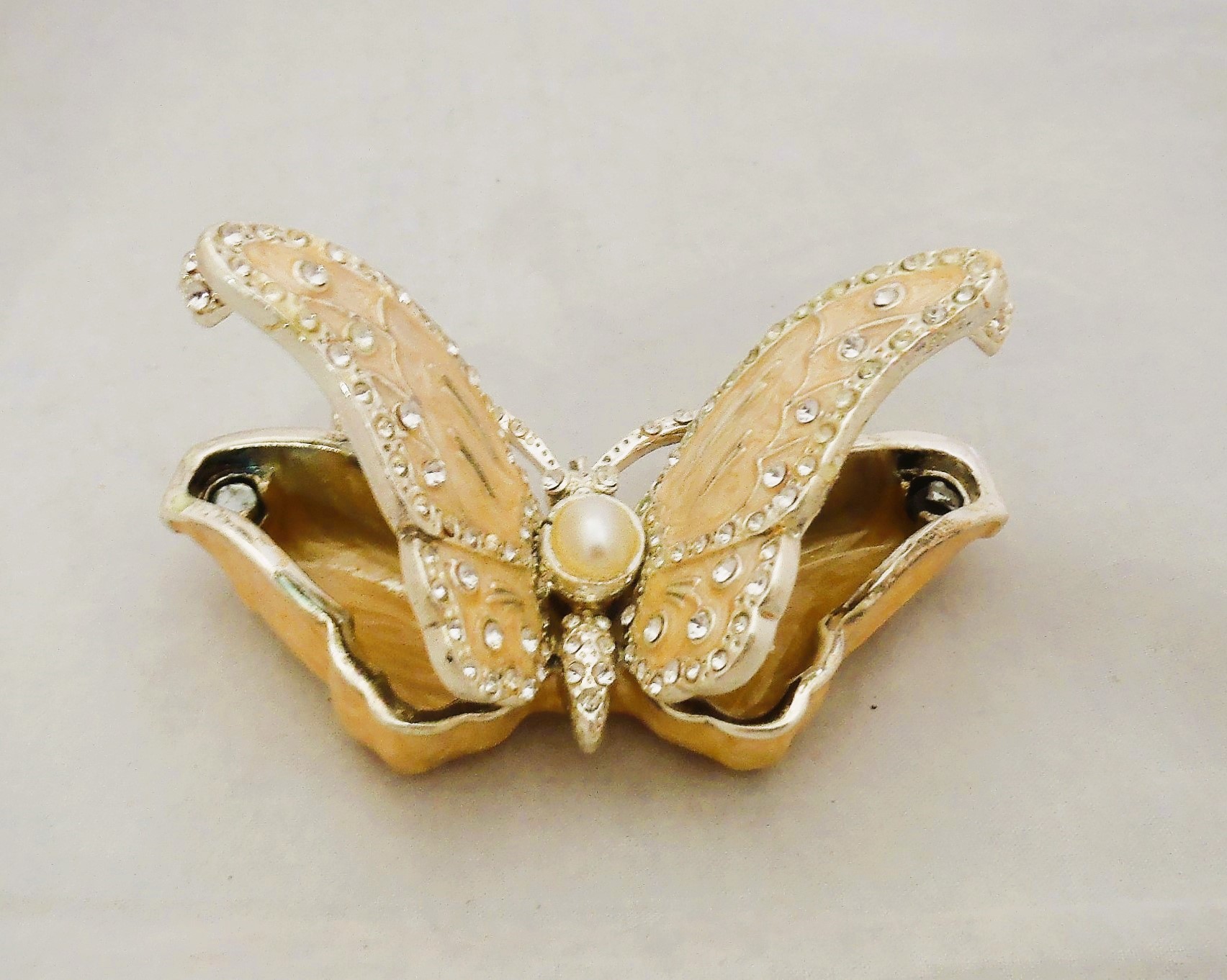 Επιτραπέζια μπρούτζινη πεταλούδα κουτάκι με σμάλτο και στρας σε διάσταση 10χ5χ2 εκ.