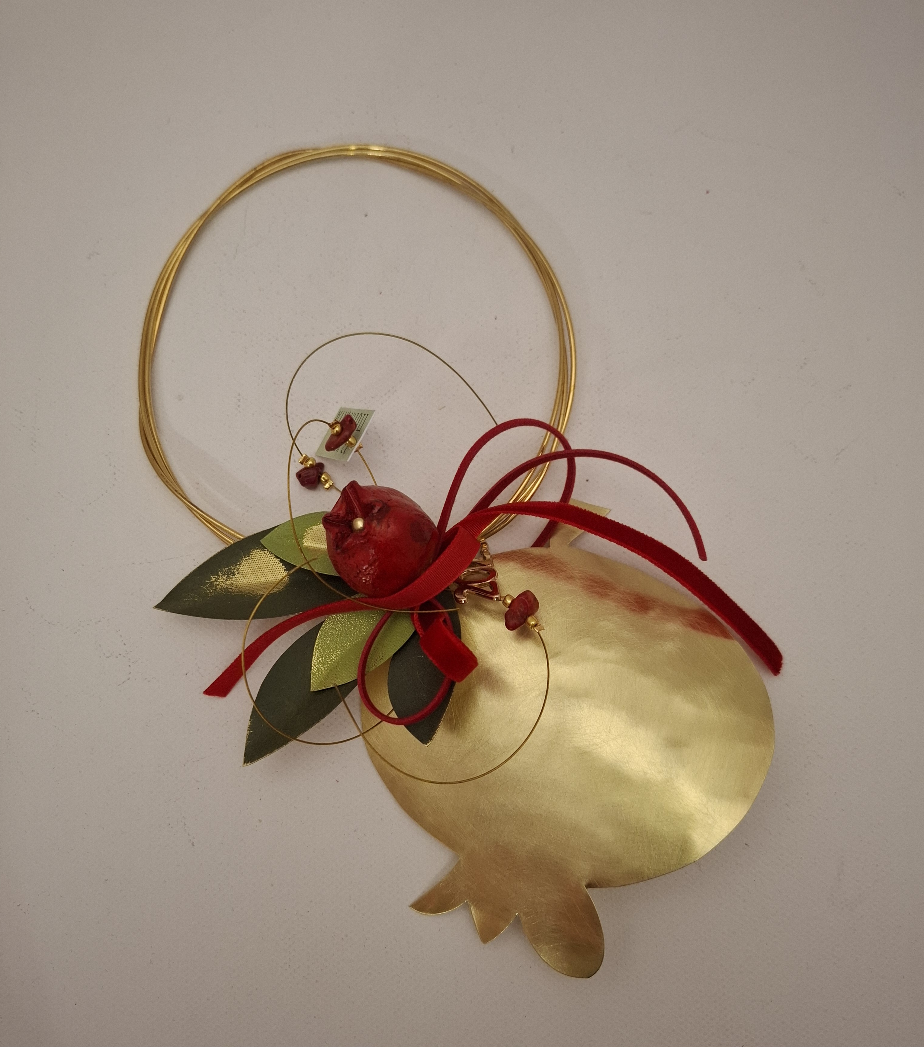 Χειροποίητο στεφάνι τοίχου ροδιά μπρούτζινο με κεραμικά στοιχεία σε διάσταση 20εκ.