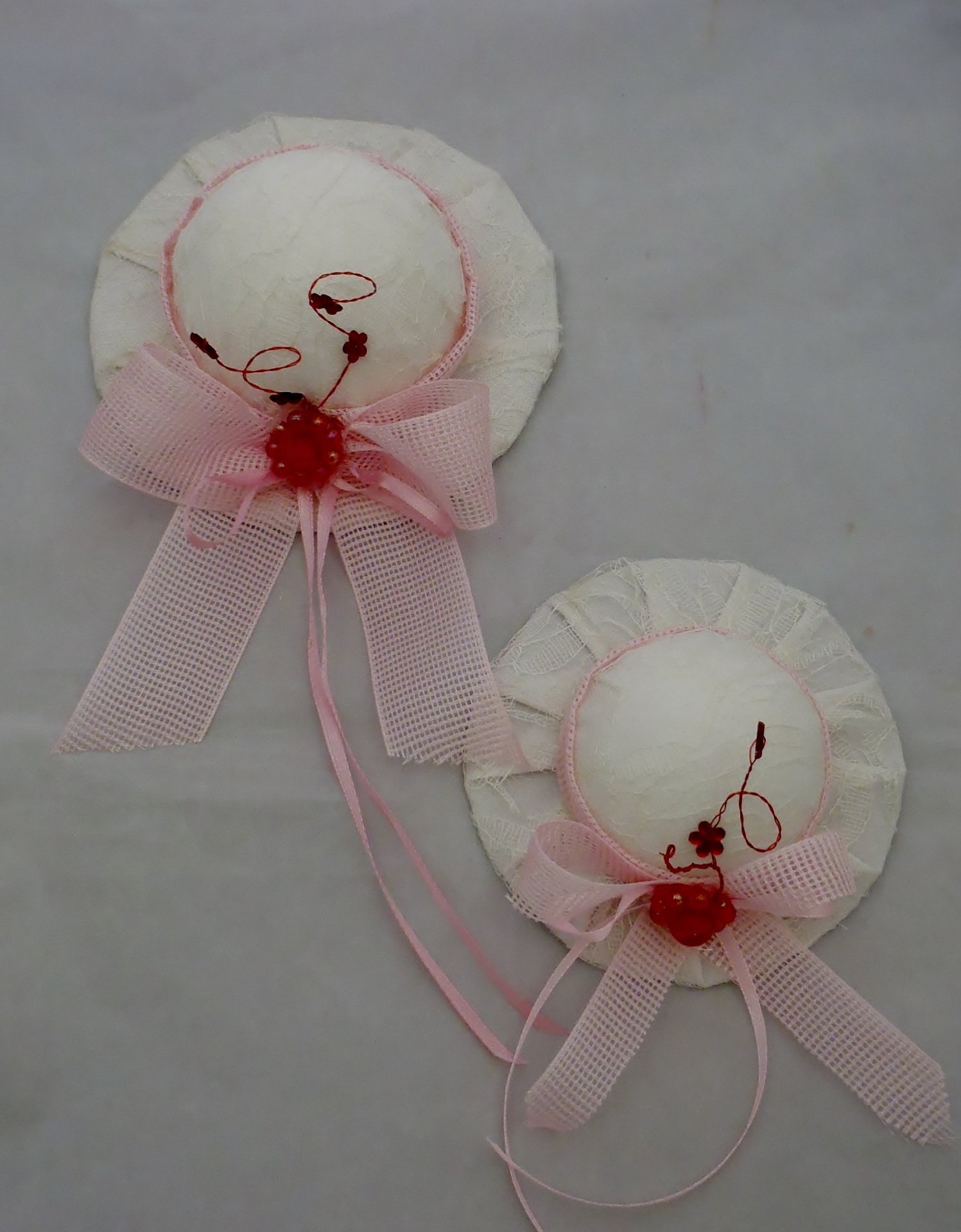 Χειροποίητα καπέλα τοίχου κατασκευασμένα από ύφασμα και δαντέλα  διατίθενται σε διάφορα χρώματα διακοσμημένα με κορδέλες και διάφορα στοιχεία σε δύο διαστάσεις 10,5εκ. και 12,5 εκ.