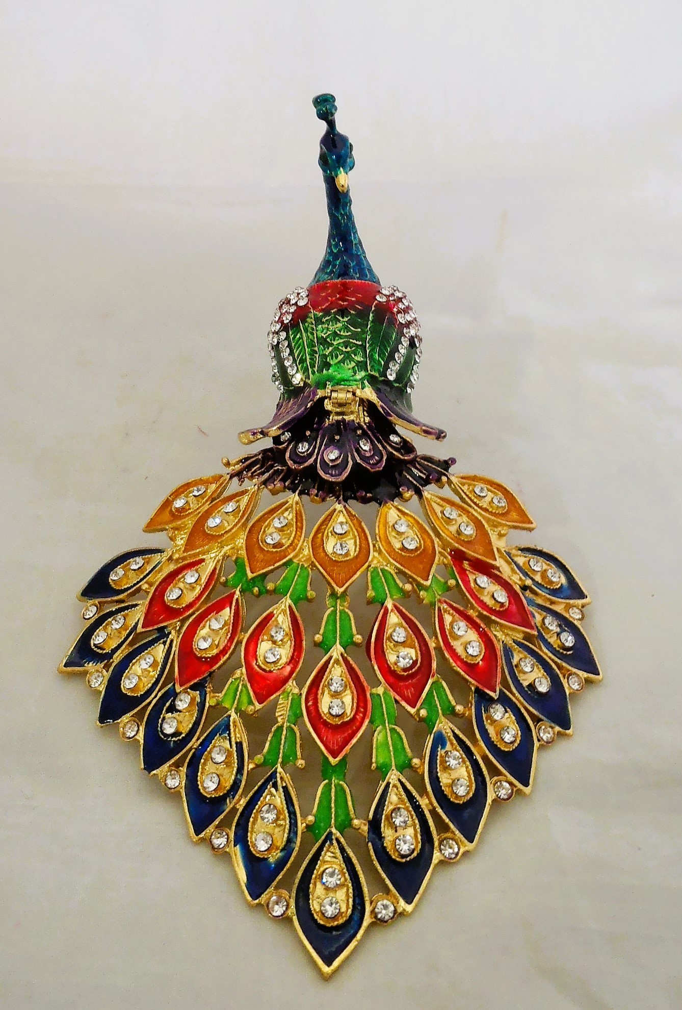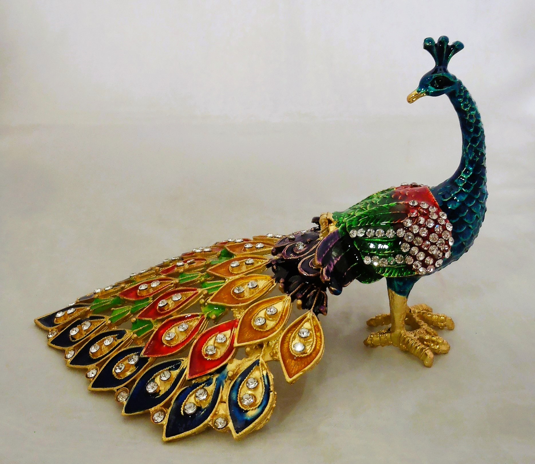 Χειροποίητο επιτραπέζιο παγώνι κατασκευασμένο από μπρούτζο σμάλτο και στρας σε δύο σχέδια και σε διάσταση 16χ12χ11εκ.