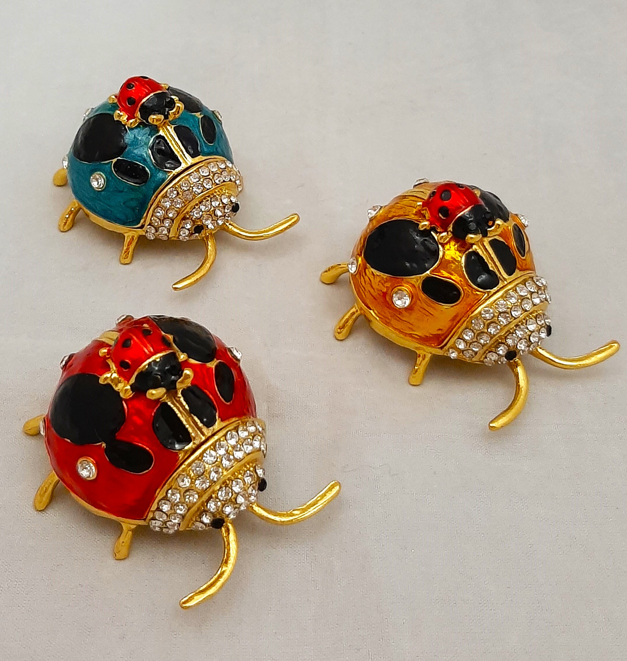 Επιτραπέζιες  μίνι μπιζουτιέρες πασχαλίτσες από μπρούτζο και σμάλτο σε διάσταση 6χ5εκ. και διάφορα χρώματα.