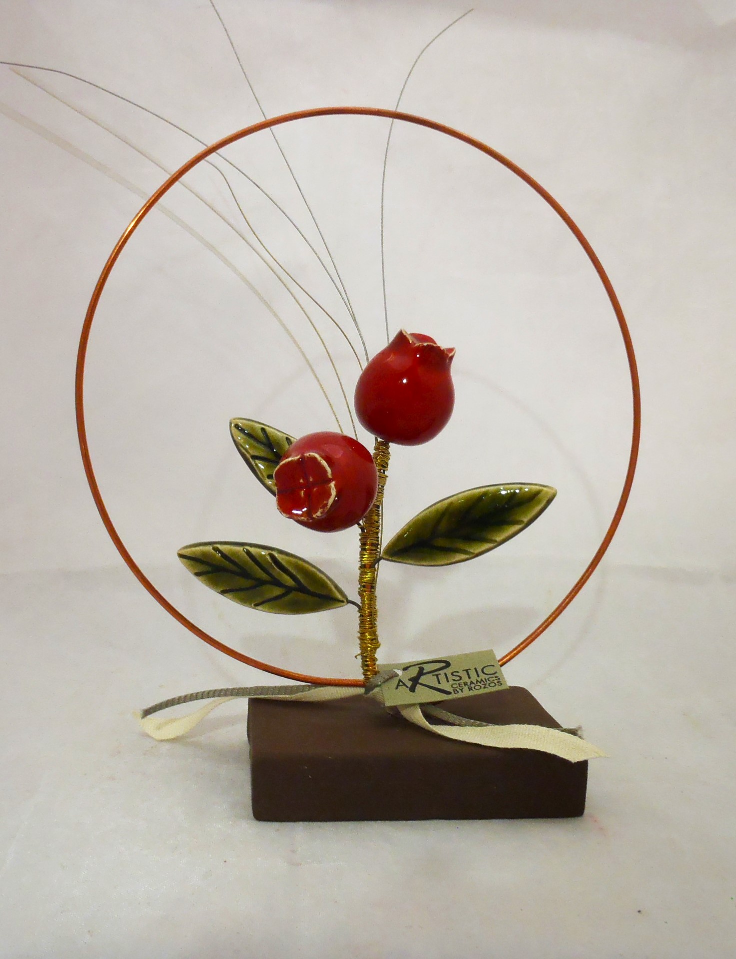 Χειροποίητο επιτραπέζιο στεφάνι κατασκευασμένο από κεραμικά ρόδια