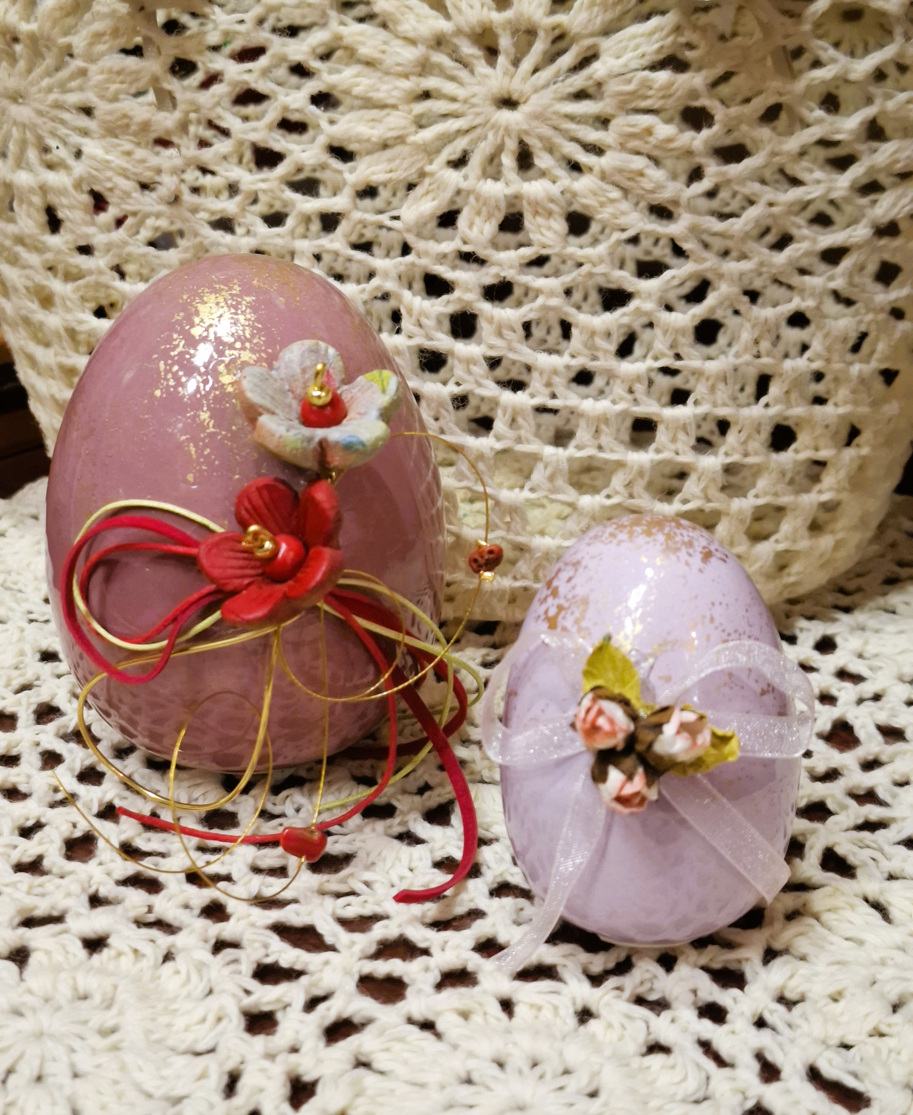 Χειροποίητα κεραμικά αυγά με διακόσμηση από κεραμικά και μπρούτζινα στοιχεία σε δύο διαστάσεις