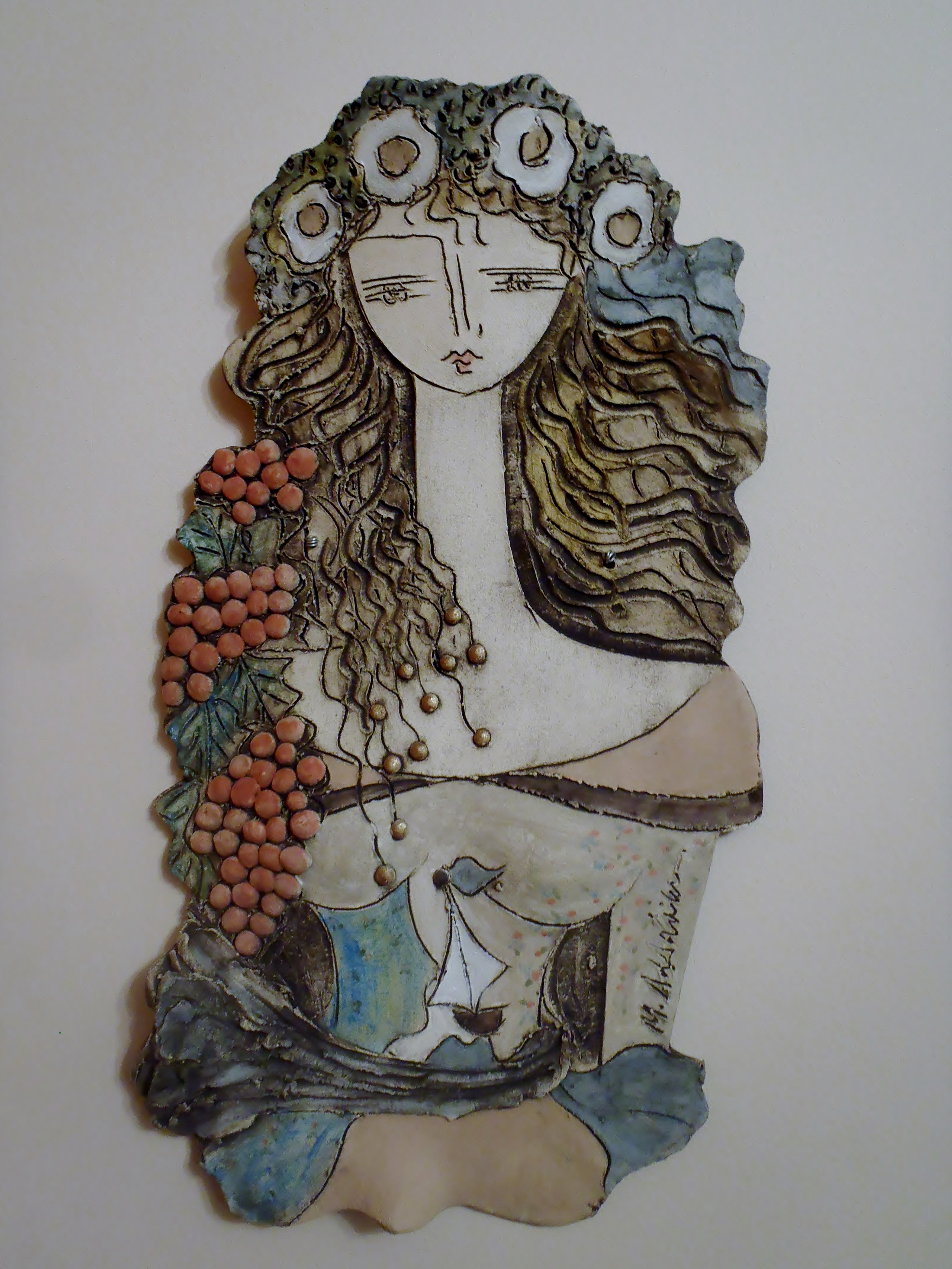 Χειροποίητη κεραμική φιγούρα τοίχου κατασκευασμένη από την κεραμίστρια Λαλαούνη Μαρία σε διάσταση 51χ29εκ.
