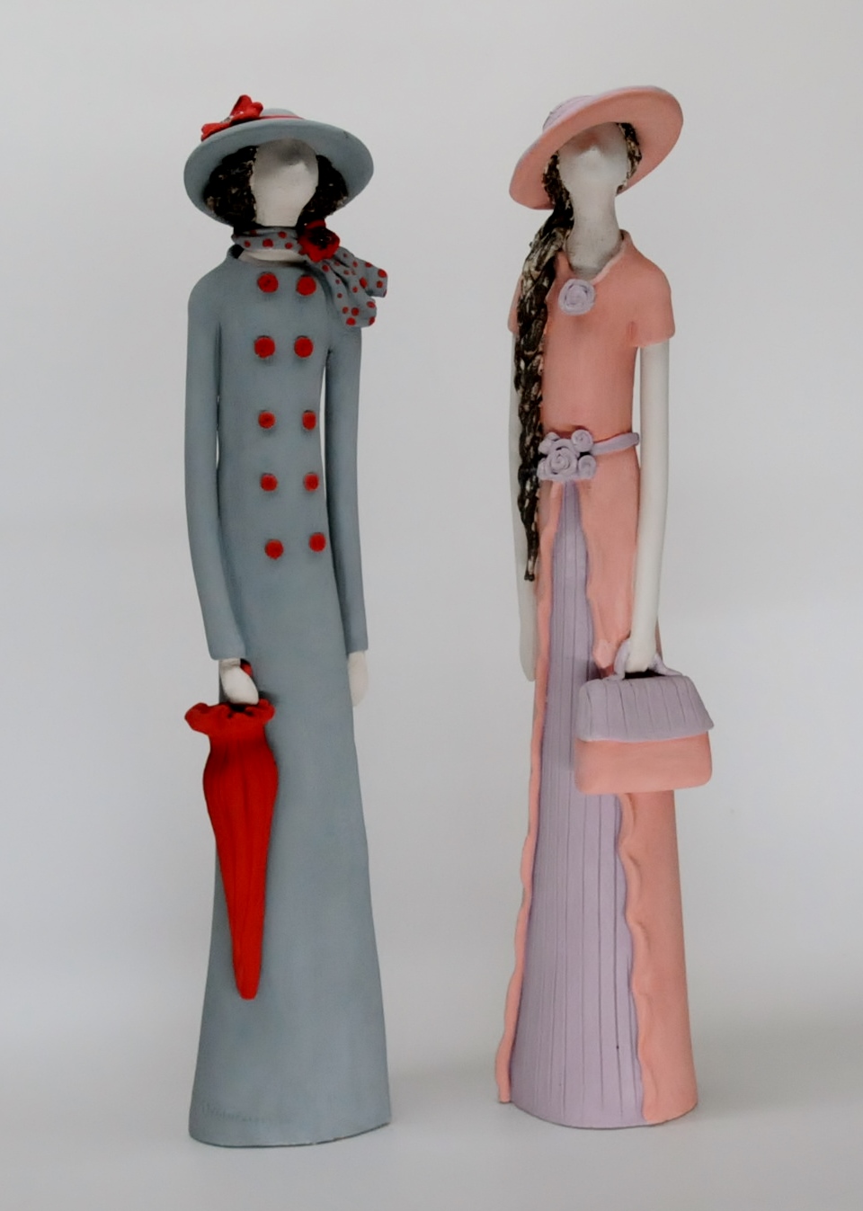 Χειροποιητες επιτραπέζιες κεραμικές γυναικείες φιγούρες ελληνικής κατασκευής σε δύο σχέδια με ύψος 45εκ. και βάρος 1400γρ