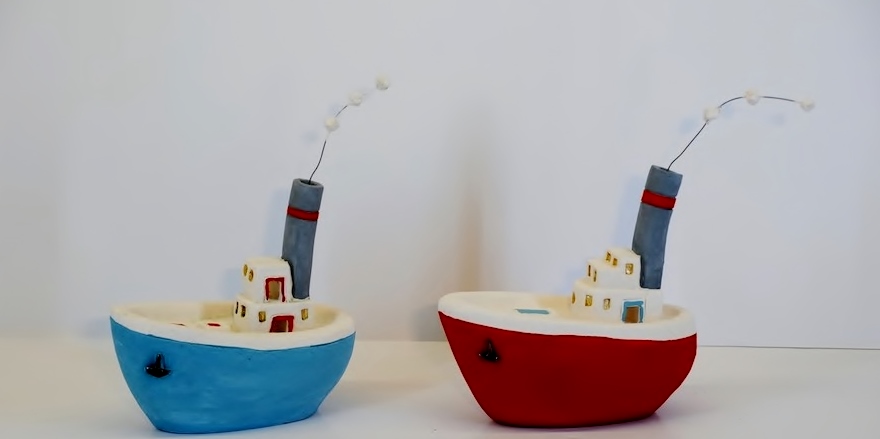 Χειροποίητα κεραμικά καράβια ελληνικής κατασκευής σε διάφορα σχέδια και χρώματα και διάσταση μήκους 16εκ.