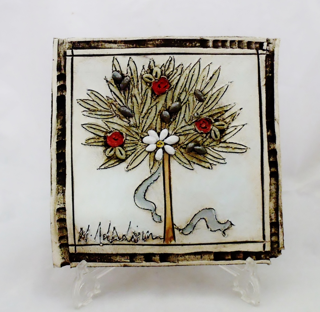 Χειροποίητο κεραμικό καδράκι με θέμα δέντρο εμπνευσμένο και κατασκευασμένο από την κεραμίστρια "Λαλαούνη Μαρία " σε διάσταση 20χ20εκ.