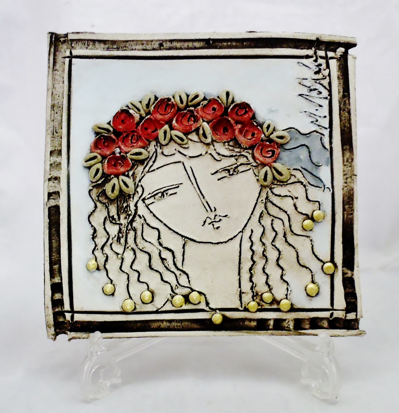 Χειροποίητο κεραμικό καδράκι με θέμα πρόσωπο εμπνευσμένο και κατασκευασμένο από την κεραμίστρια "Λαλαούνη Μαρία " σε διάσταση 20χ20εκ.