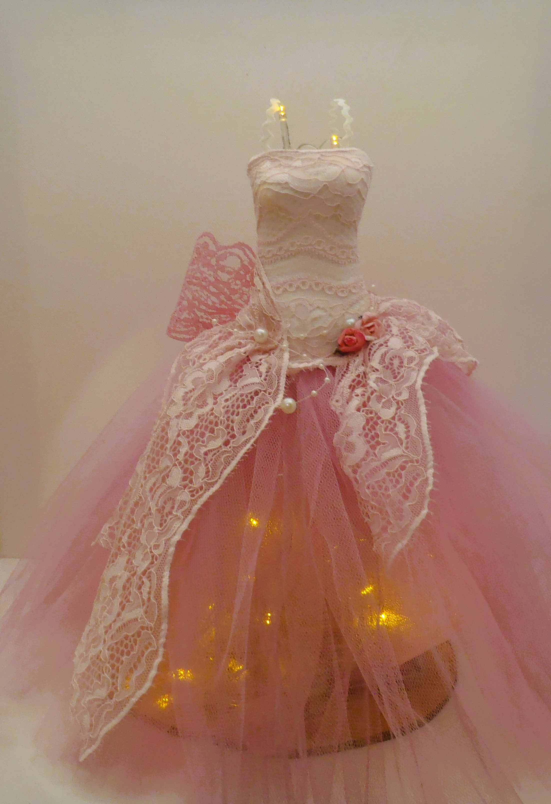 Χειροποίητο επιτραπέζιο γυναικείο μπούστο φορεματάκι με φώς σε δύο χρωματισμούς και σε διάσταση 30χ30εκ.