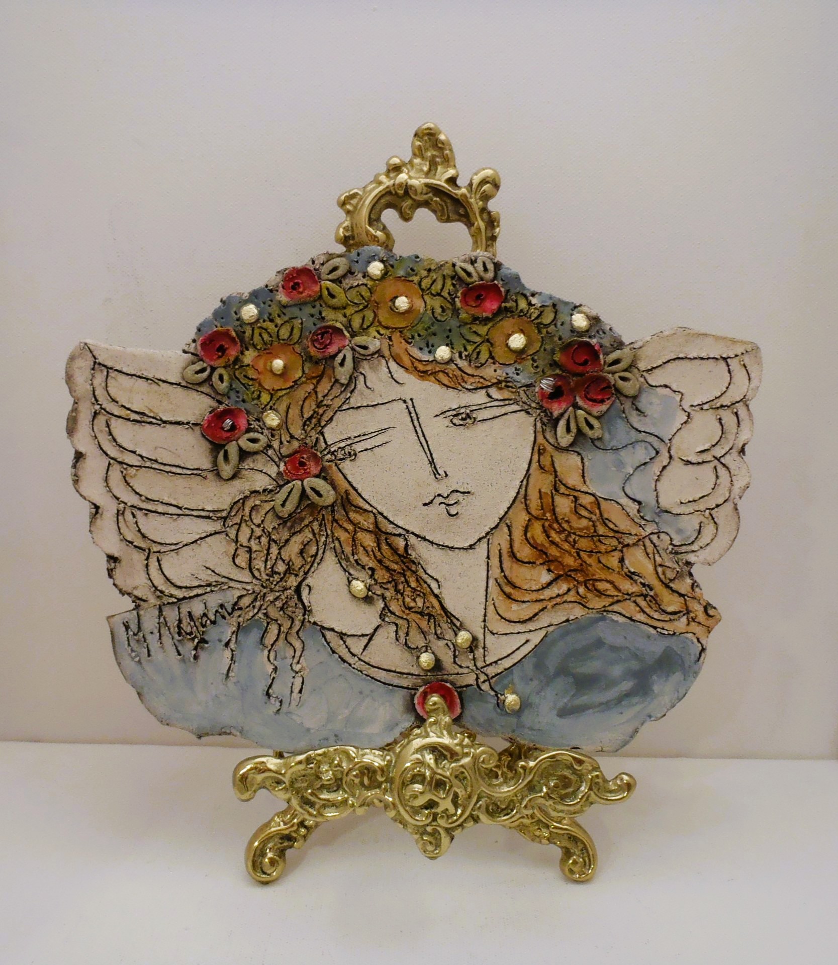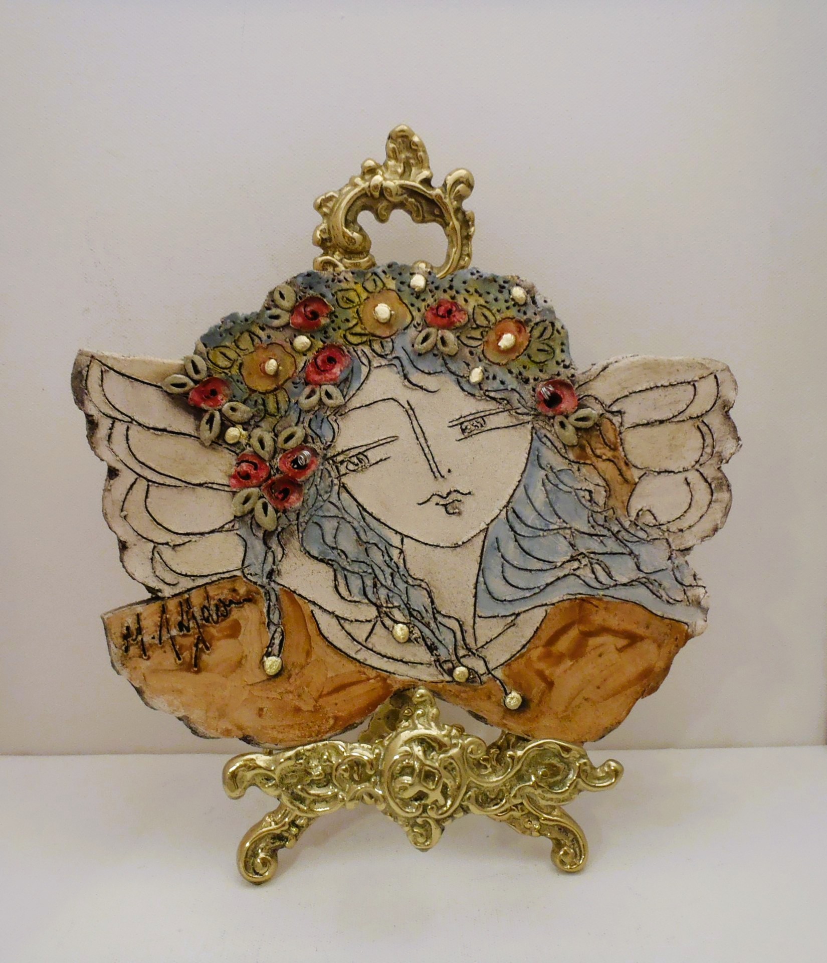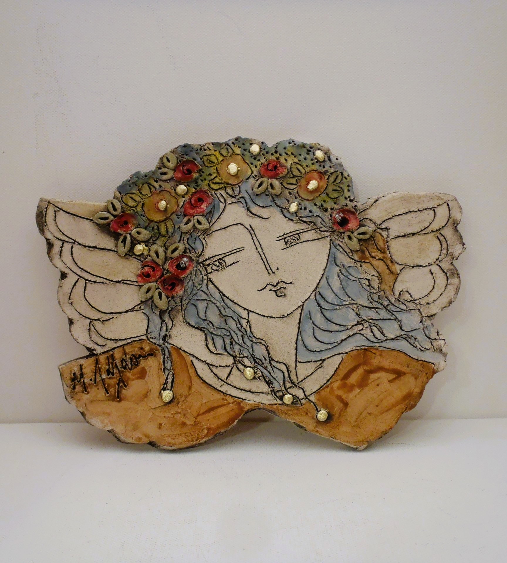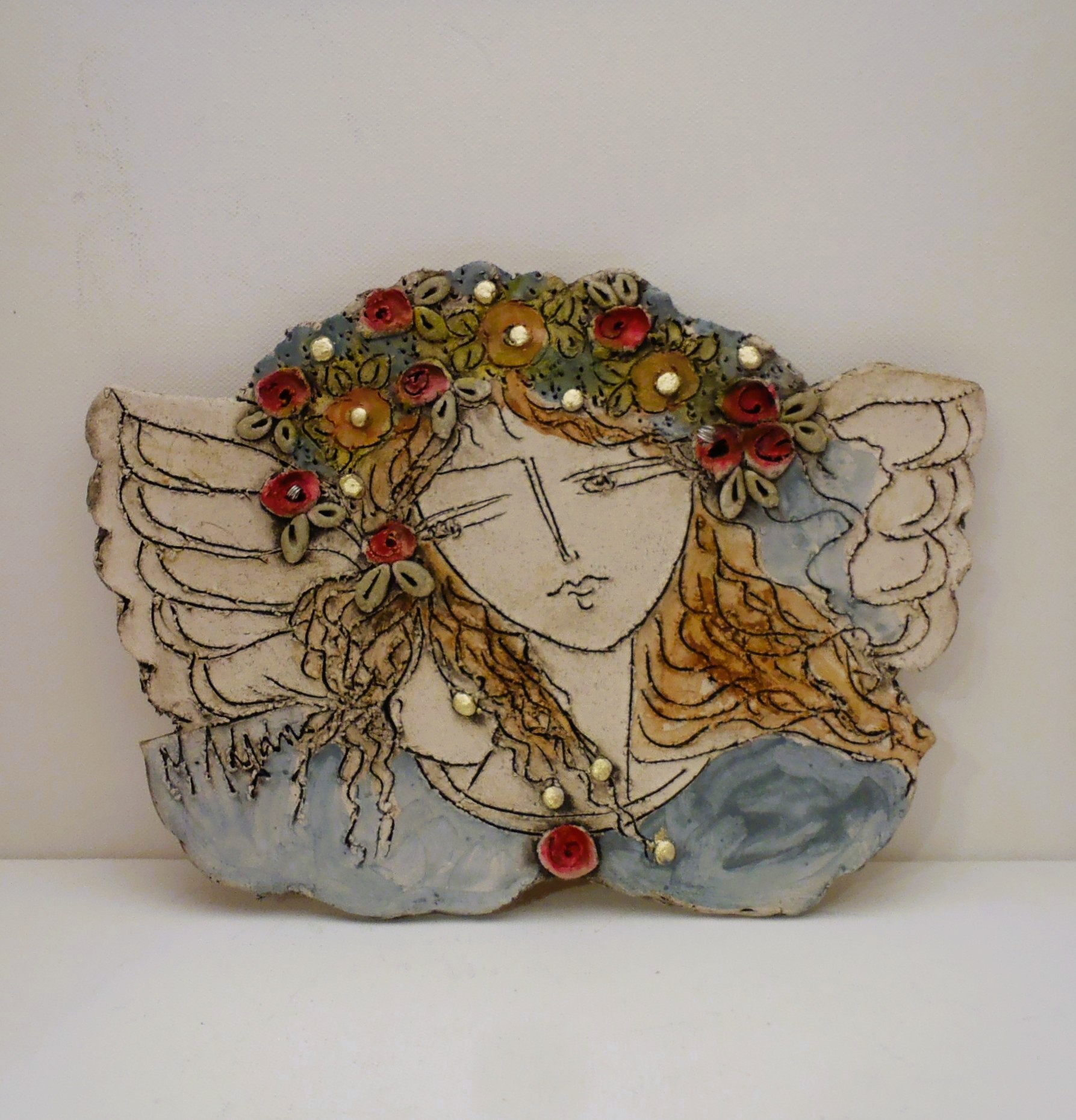Χειροποίητος κεραμικός άγγελος επιτραπέζιος και τοίχου σε δύο σχέδια και σε διάσταση 25χ18εκ. Εμπνευσμένος και κατασκευασμένος από την κεραμίστρια Λαλαούνη Μαρία. Η μπρούτζινη βάση της φωτογραφίας δεν περιλαμβάνετε στην τιμή.