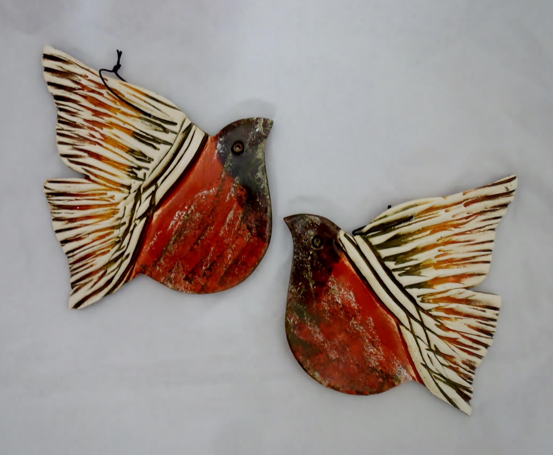 Χειροποίητο κεραμικό περιστέρι σε κεραμιδί χρώμα και πολύχρωμα φτερά