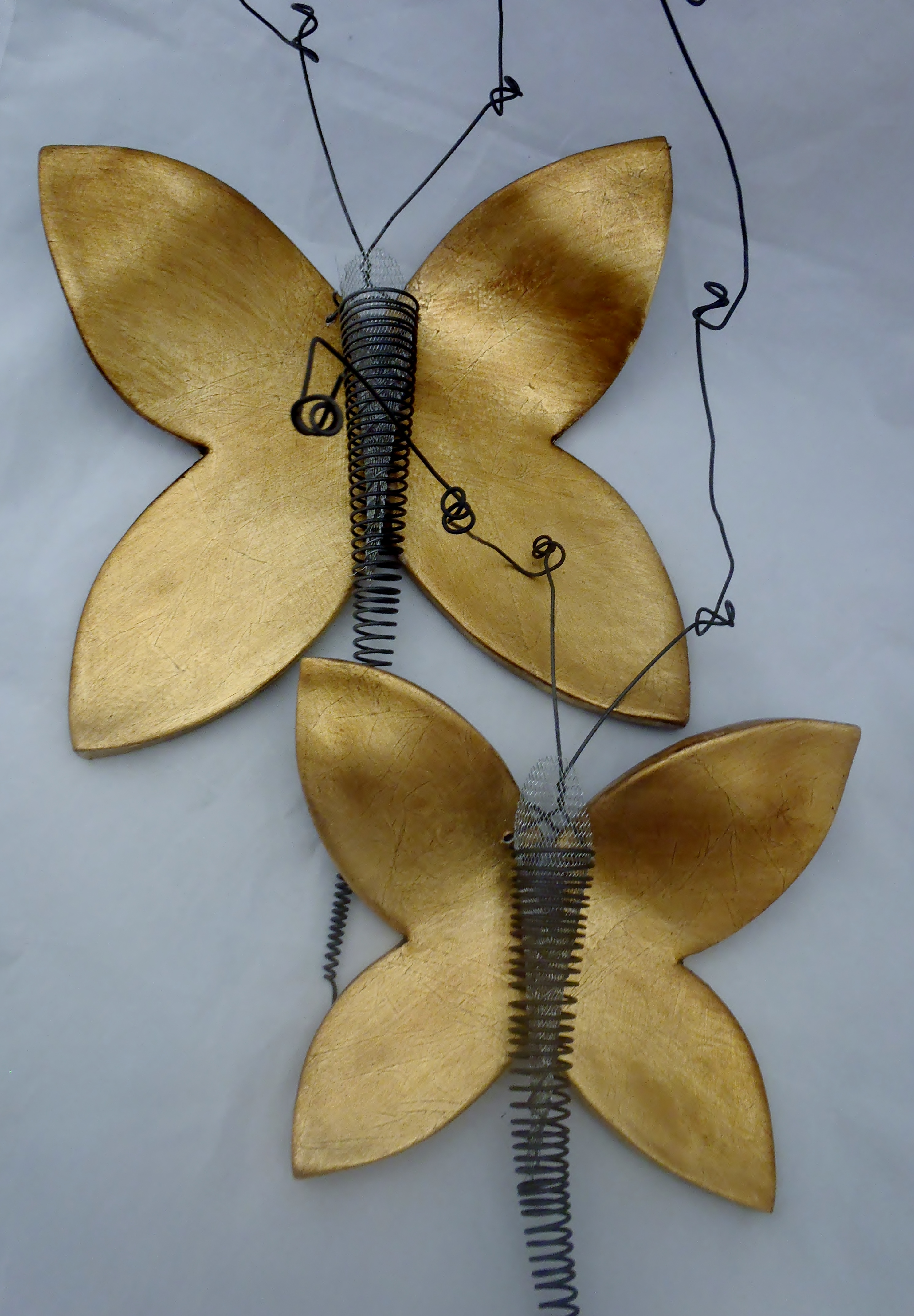 Χειροποίητες πεταλούδες τοίχου κατασκευασμένες από πηλό σε χρώμα χρυσό και σε δύο διαστάσεις 14χ16εκ. και 18χ19εκ.