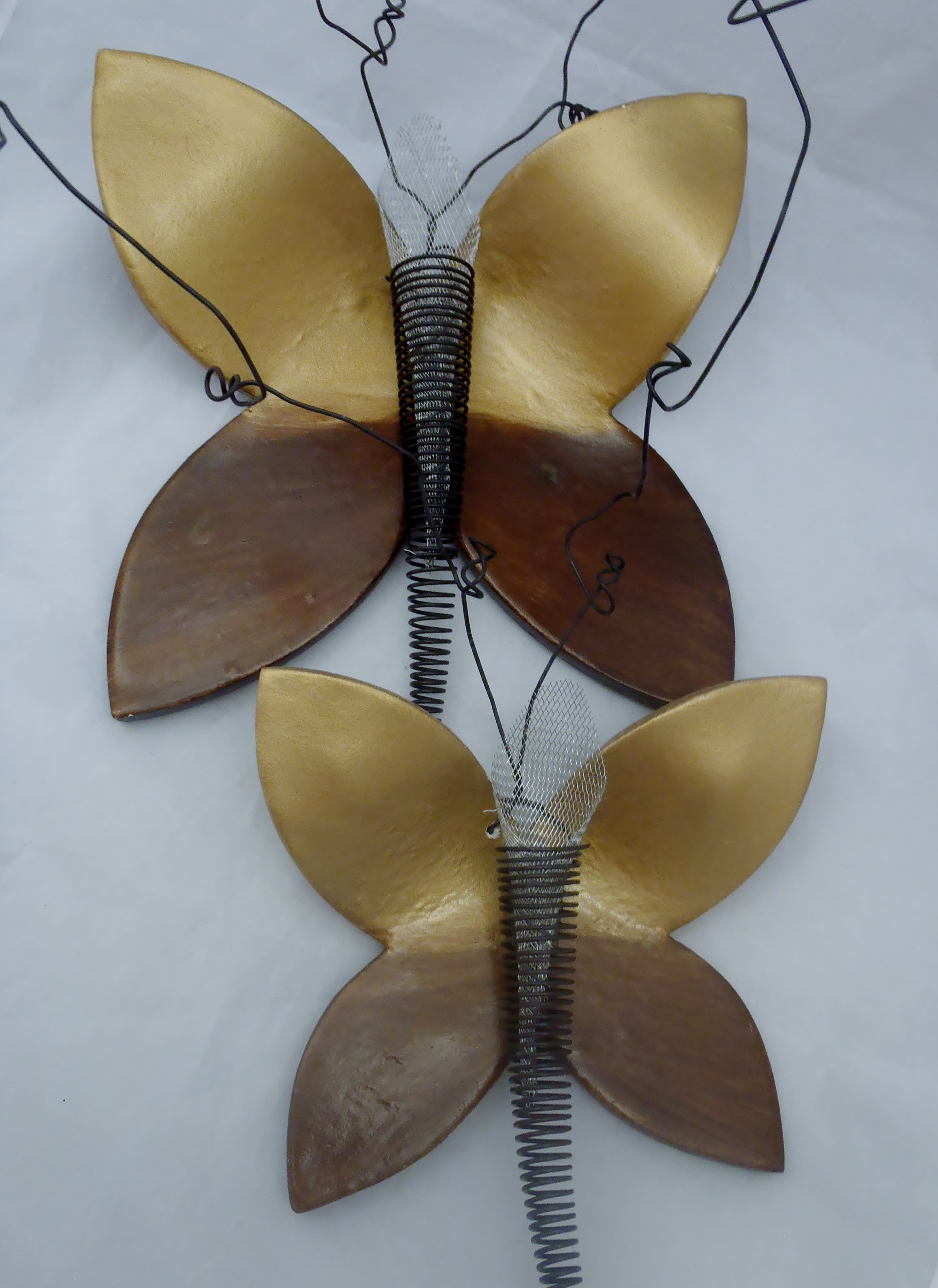 Χειροποίητες πεταλούδες τοίχου κατασκευασμένες από πηλό σε χρώμα χρυσό-καφέ και δύο διαστάσεις 14χ16εκ. και 18χ19εκ.