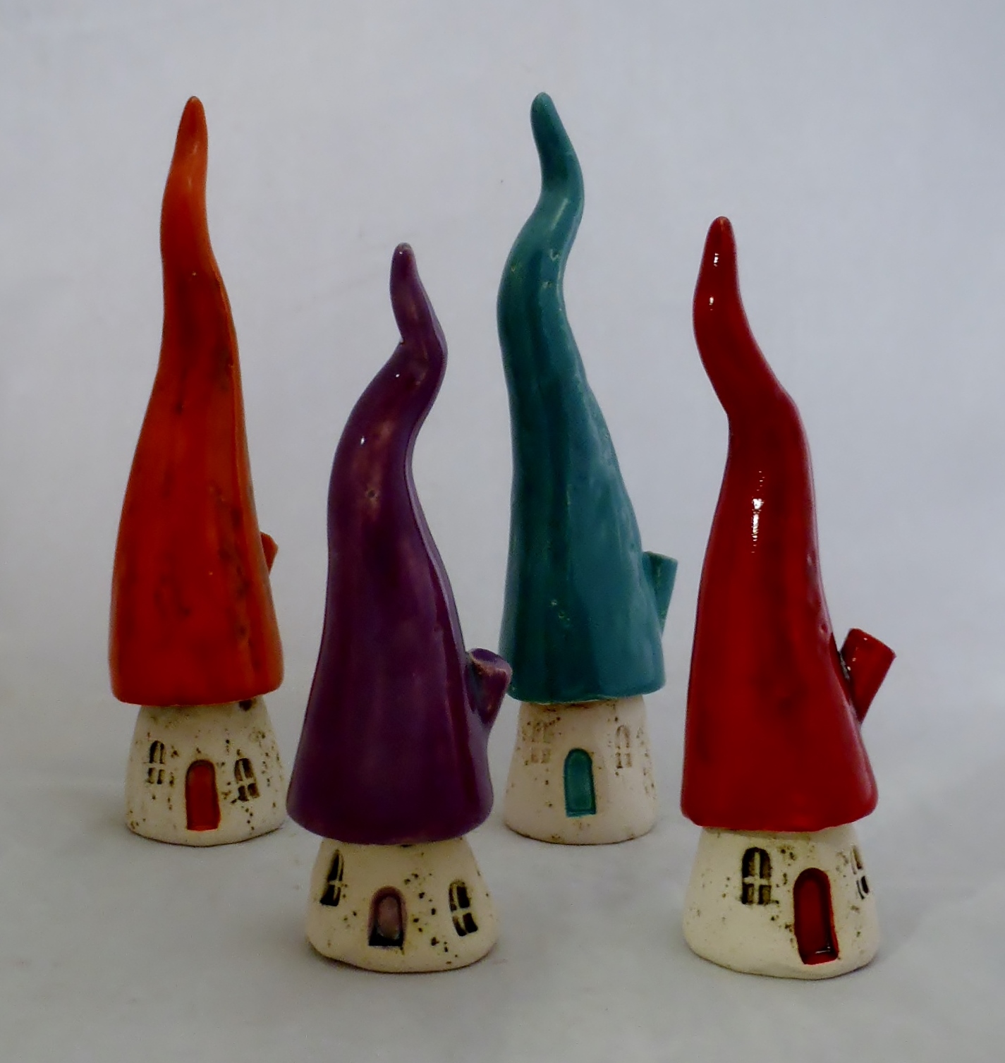 Χειροποίητα κεραμικά σπιτάκια σε δύο μεγέθη 13εκ. και 17εκ. ύψος σε διάφορα χρώματα.