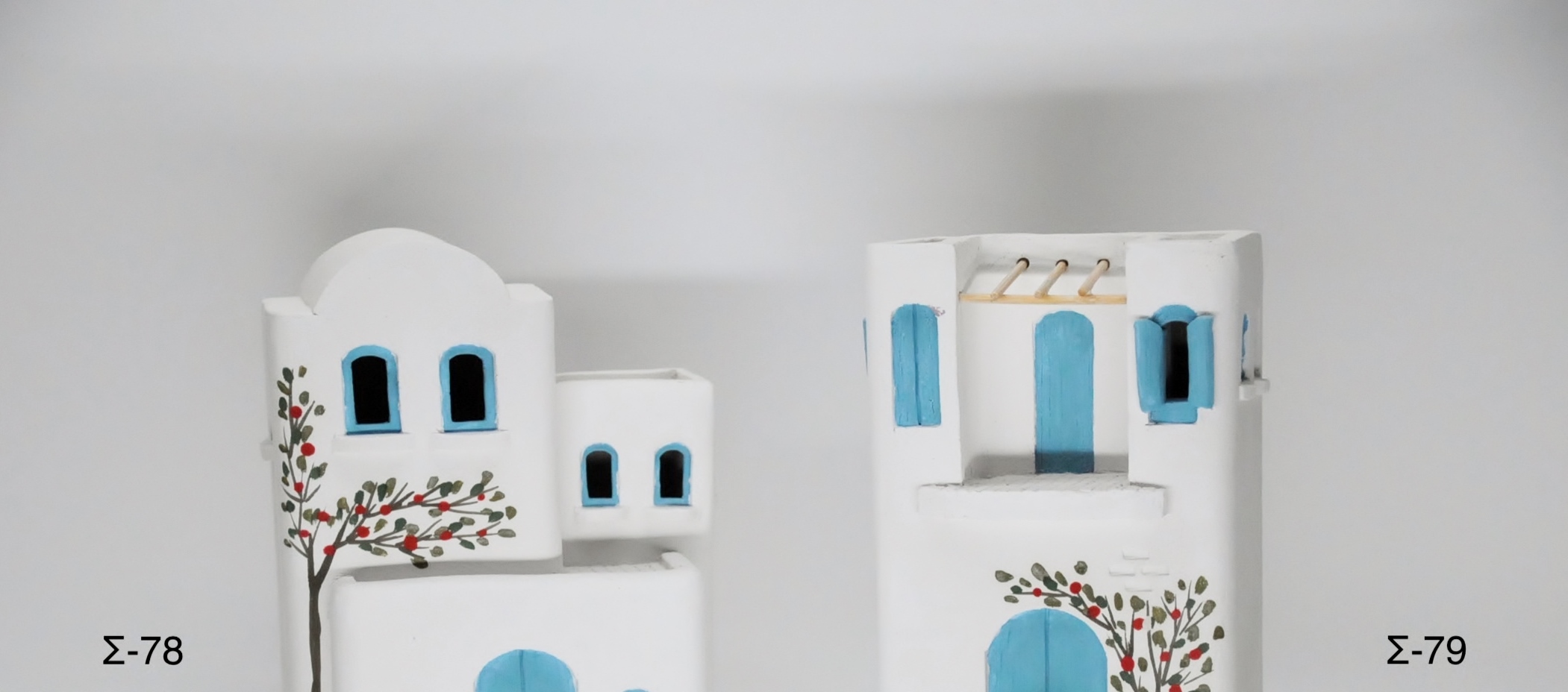 Χειροποίητα επιτραπέζια κεραμικά νησιώτικα σπίτια με θέση για κεράκι ρεσώ στο εσωτερικό τους σε δύοα σχέδια
