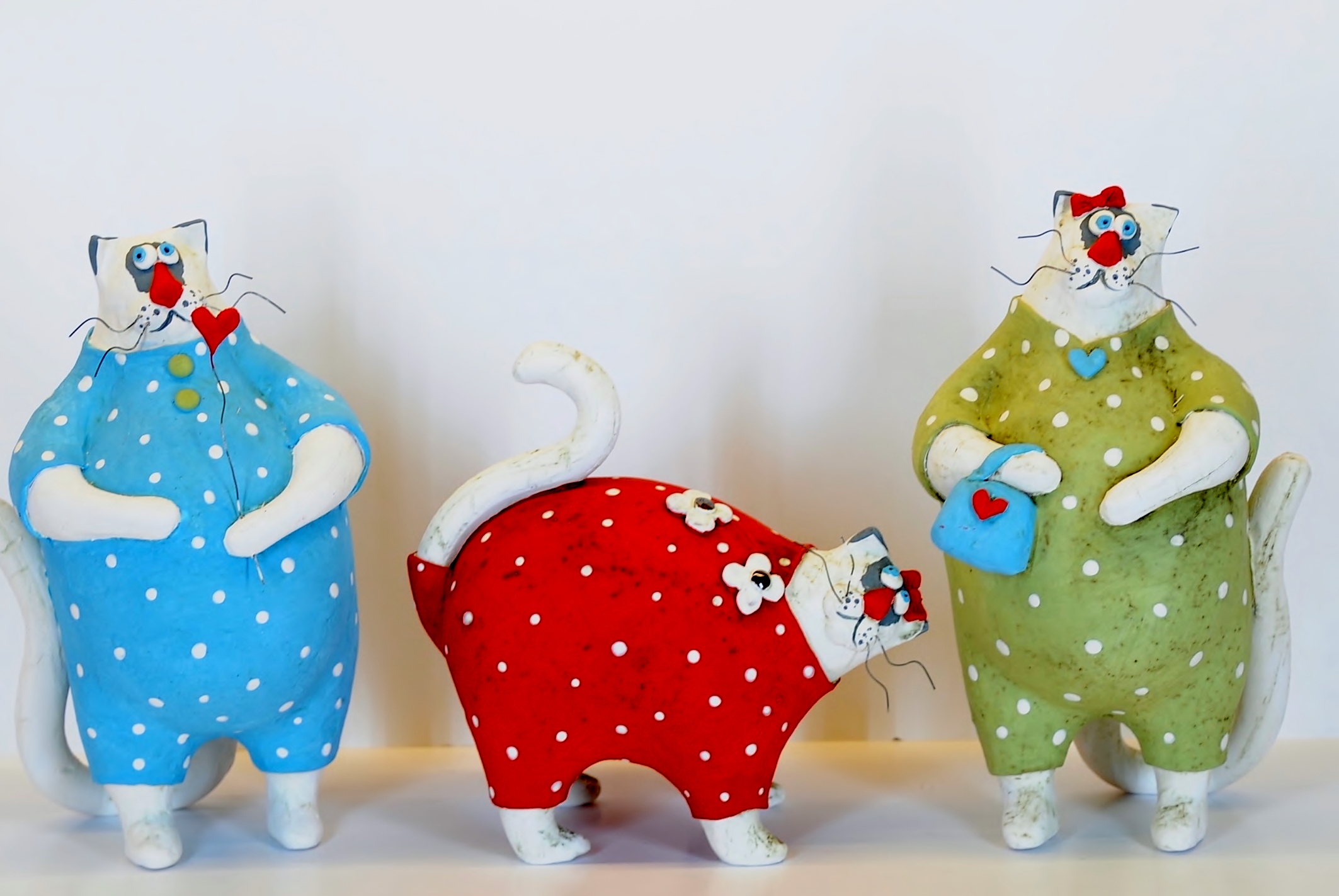 Χειροποίητες Επιτραπέζιες Κεραμικές Γατούλες Σε τρία Σχέδια Και Χρώματα