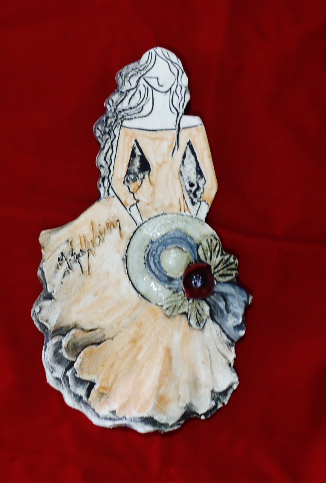 Χειροποίητη γυναικεία κεραμική φιγούρα τοίχου εμπνευσμένη και δημιουργμένη από την κεραμίστρια Λαλαούνη Μαρία