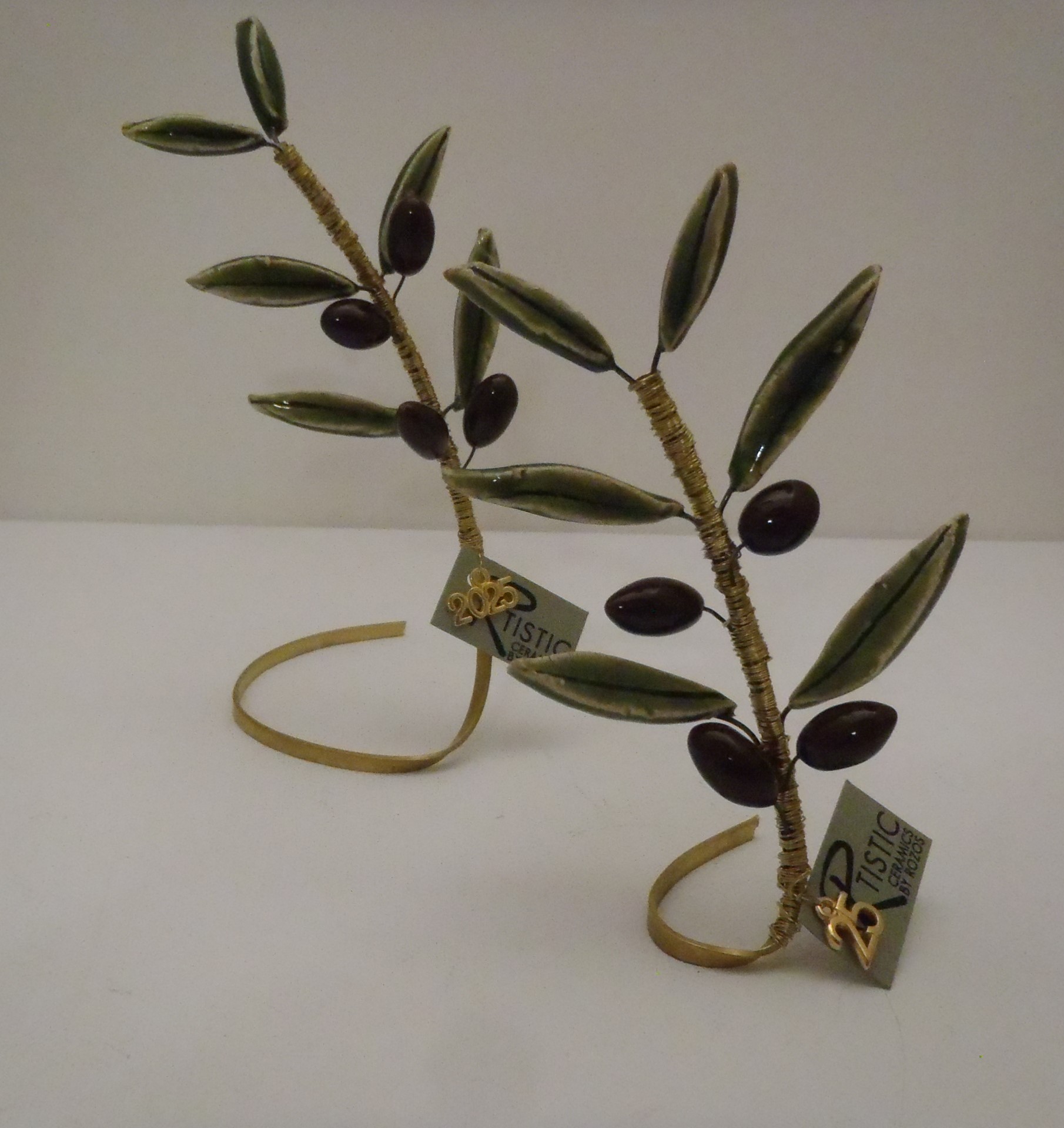 Χειροποίητο κεραμικό κλαδί ελιάς επιτραπέζιο ή κρεμαστό σε διάσταση 11εκ.