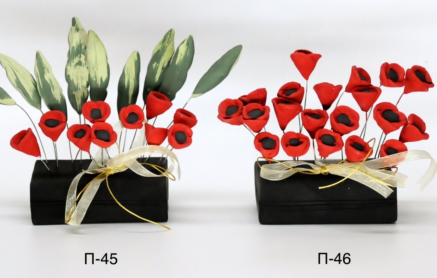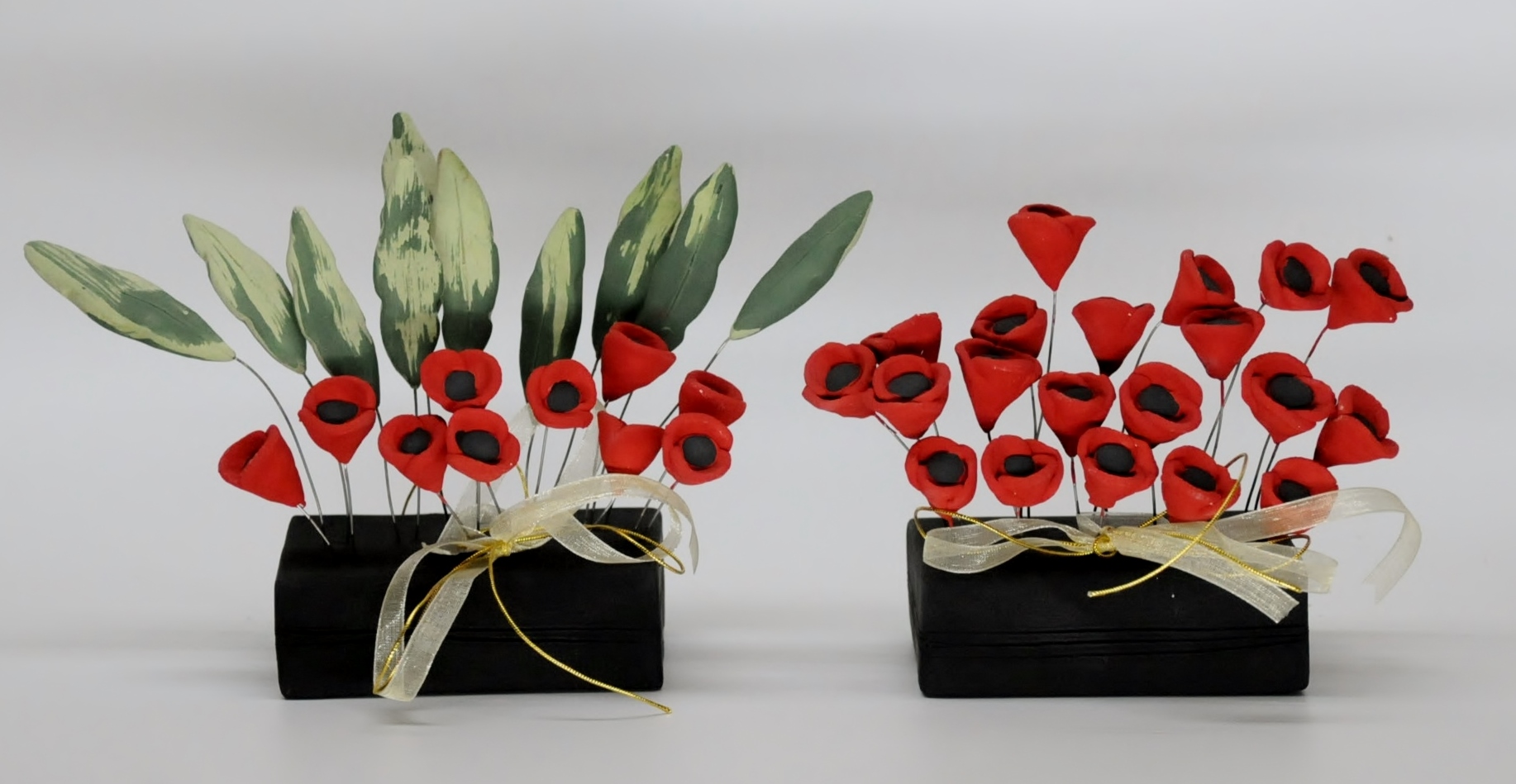 Χειροποίητα επιτραπέζια κεραμικά λουλούδια με γλάστρα σε δύο σχέδια και σε διάσταση ύψους 13εκ. και βάρος 500γρ εμπνευσμένα και κατασκευασμένα από την