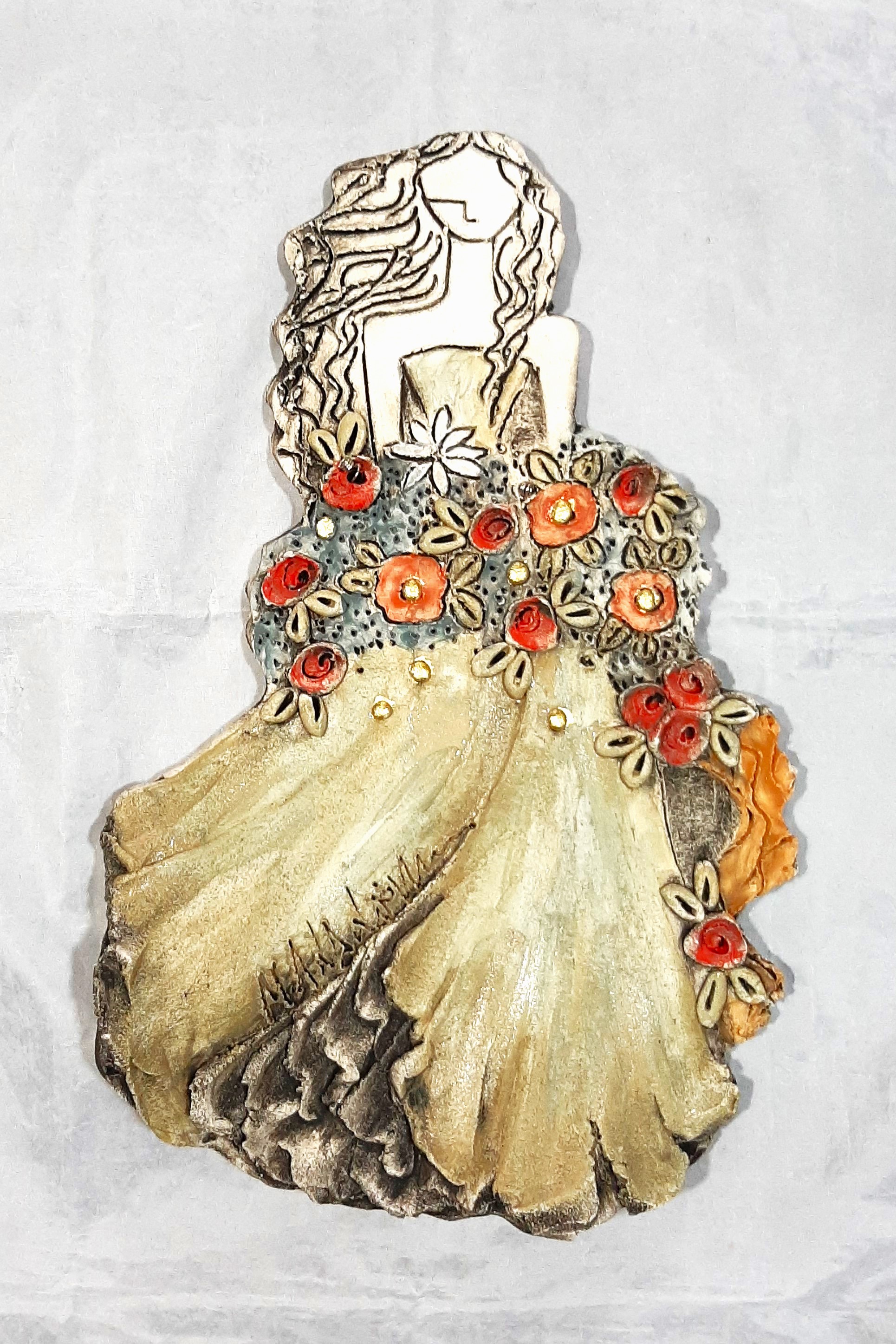 Χειροποίητη κεραμική γυναικεία φιγούρα εμπνευσμένη και κατασκευασμένη από την κεραμίστρια Λαλαούνη Μαρία σε διάσταση ύψους 35εκ.