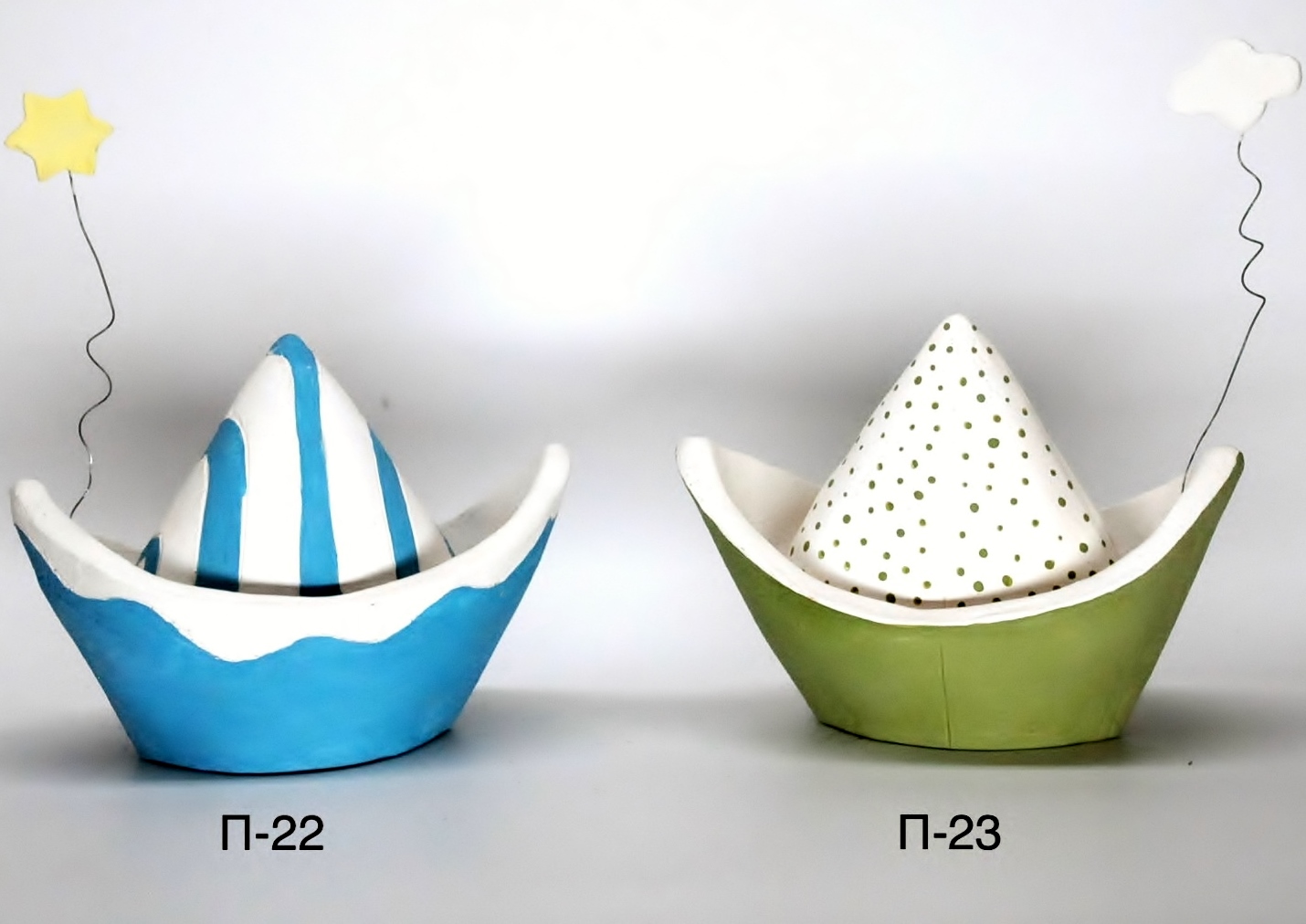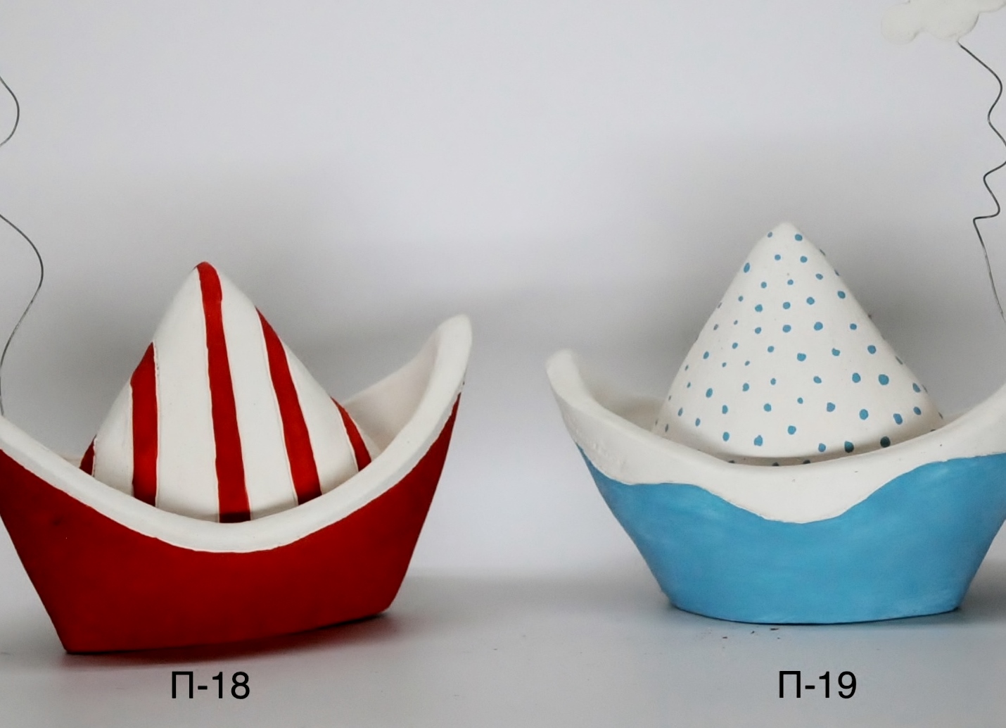 Χειροποίητα κεραμικά επιτραπέζια καραβάκια σε 6 σχέδια με ύψος 14 εκ. και βάρος 700γρ.