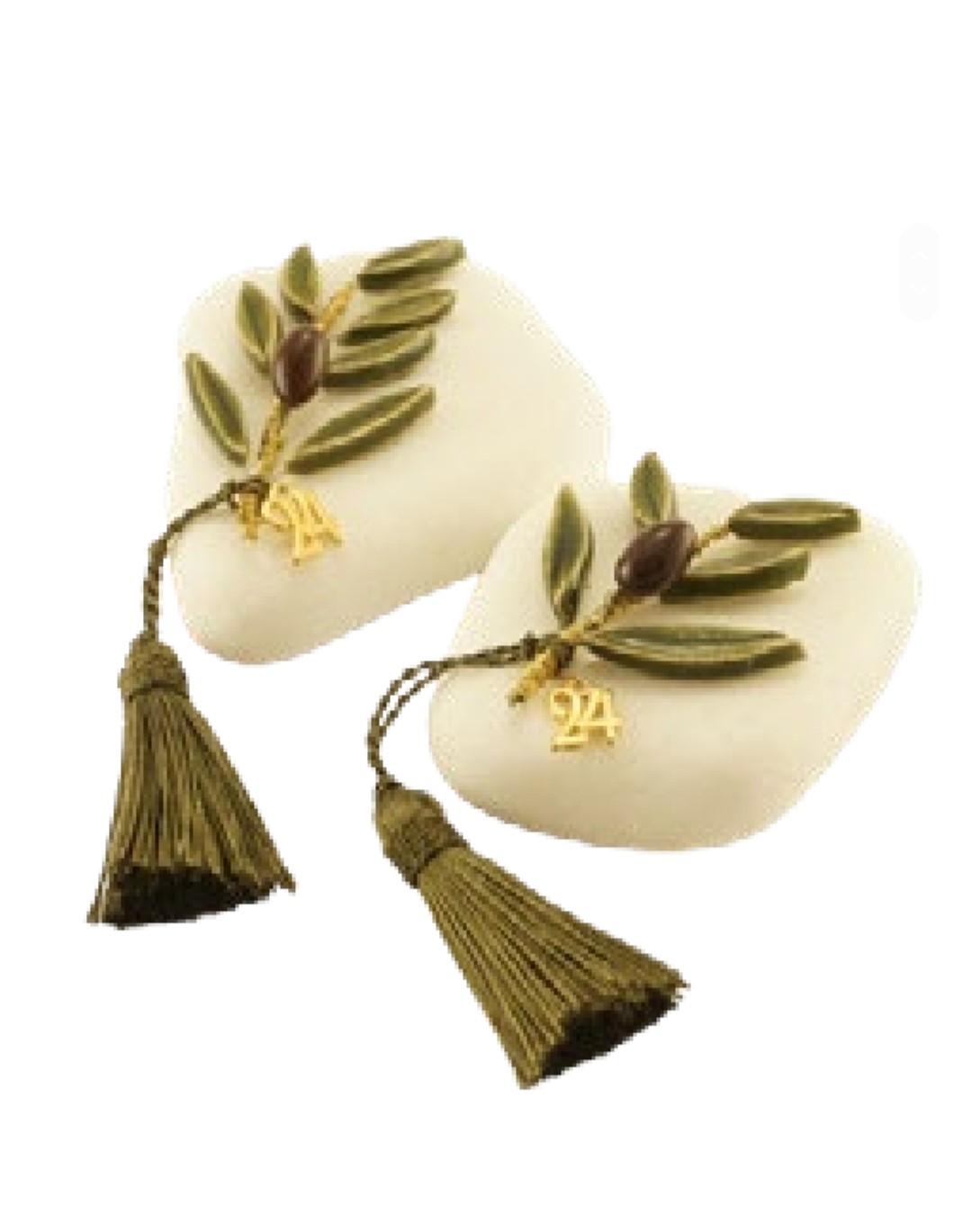 Χειροποίητο επιτραπέζιο κεραμικό γούρι ελιάς πάνω σε πέτρα σε δύο διαστάσεις